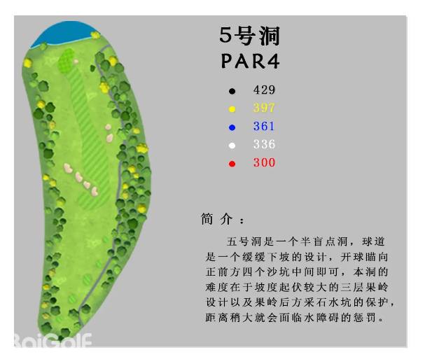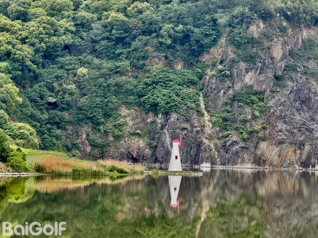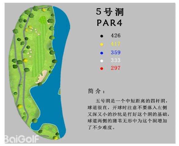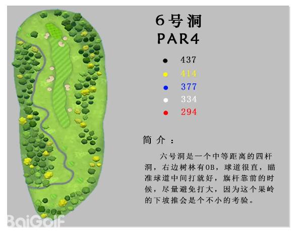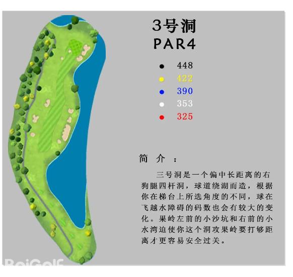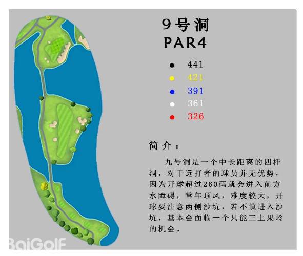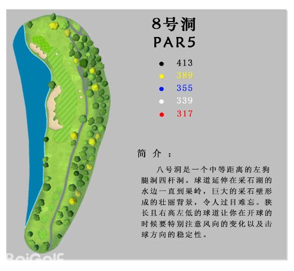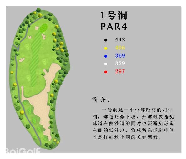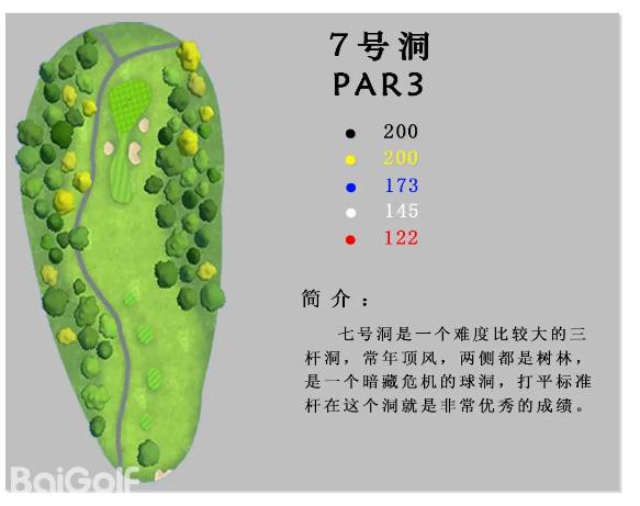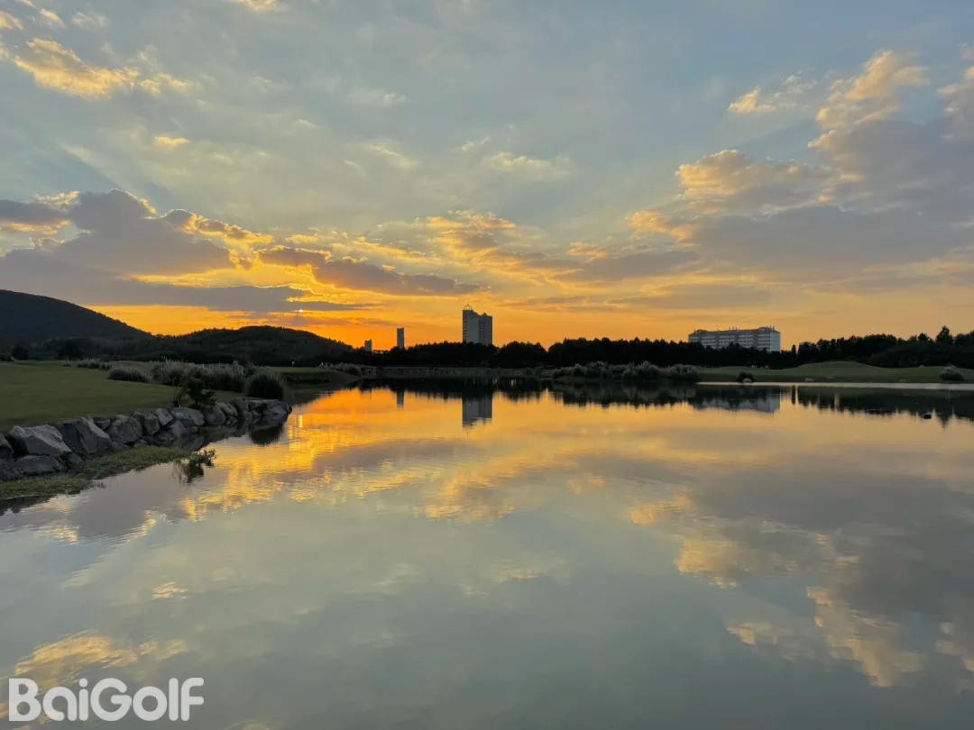 由美国排名前三位的著名高尔夫设计师RONGARL 亲自设计。球场优势:6座山镶嵌,峡谷造就落差30米、海拔150米高难度、大景观球道。3A发球台建立在山顶之上,临峰望海,风景极佳。7C果岭起伏比较大,前后较低,中间较高,落差有十几米,是整个球道中地理位置最好的球道。5C球道的尽头就是个天然的采石坑,气势宏伟,且果岭后的10码处是水障碍,要小心应对,防止球面临着下水的危险。