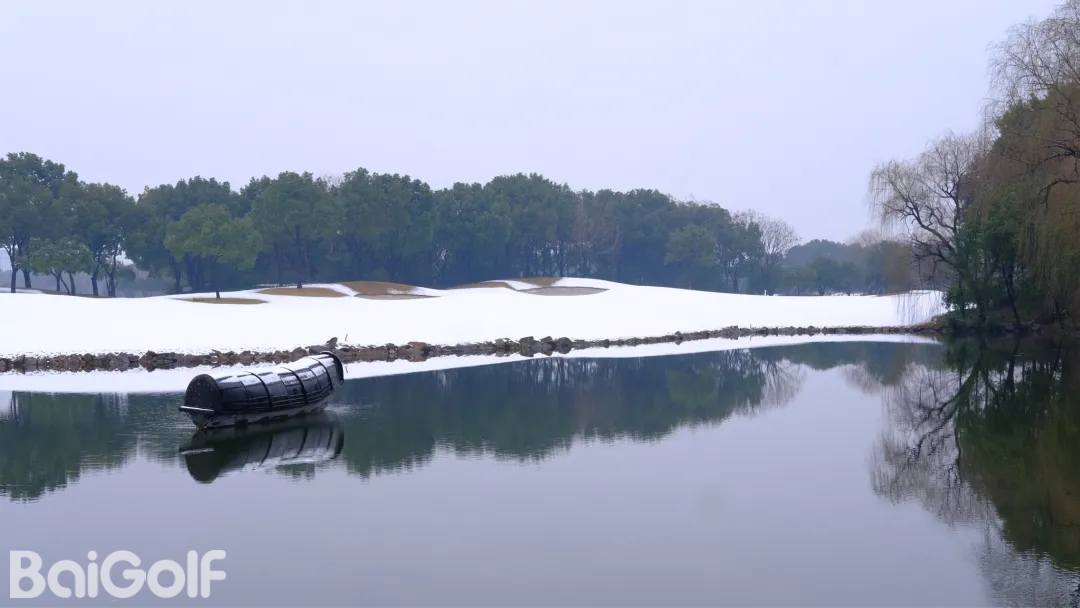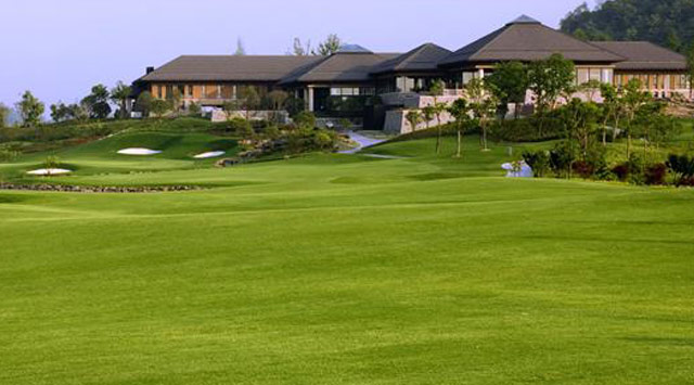 由美国JMP高尔夫设计公司Mark E Hollinger先生设计。球场依山傍湖,水天一色,独具匠心的球场设计,让您在每每的细节中,体味到畅快挥杆的乐趣无穷。岛果岭、组团沙坑,尤其最后沿鉴湖四洞,远景、近景、处处绝境;长洞、短洞、洞洞艰险,最后一刻才能方显英雄本色!