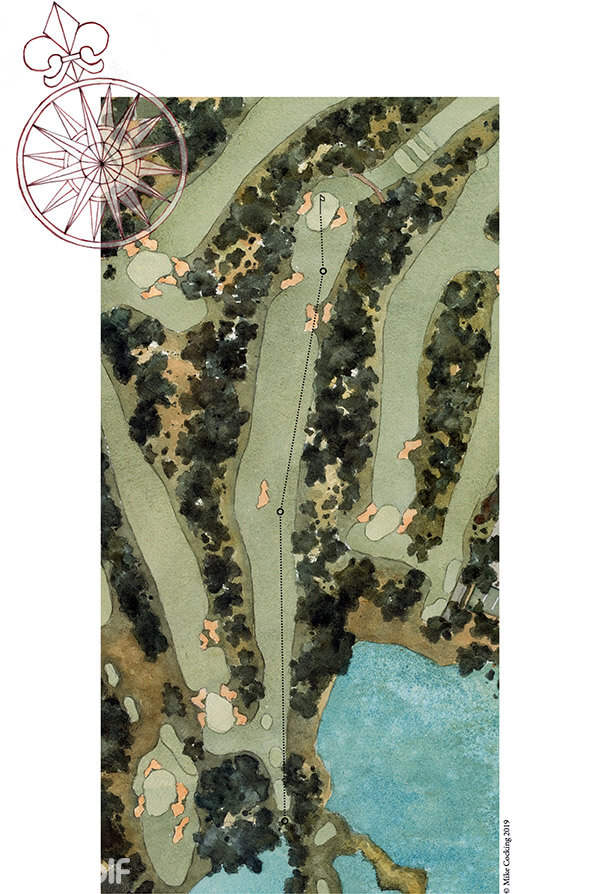 卡林纽湖锦标赛球场的标志性球洞是 220 码、三杆洞、第 8 洞,越过水面打到高架果岭,前面有深沙坑保护。越过球杆,开球将沿着果岭后方的河岸飞去。毋庸置疑,在这个难度较高的短洞,三杆成绩已经很不错了。