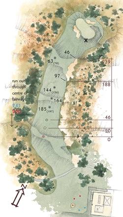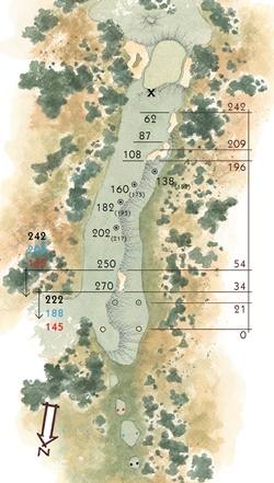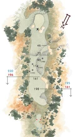 开球洞是一洞短杆五杆洞,长打者两杆即可轻松打到,但果岭的设置是为了奖励那些沿着宽阔球道右侧开球并靠近球洞边缘沙地荒地的球员。那些三杆球手会发现从球道右侧边缘投球要容易得多,而从球道左侧半部越过前右侧沙坑的球可能是最好在比赛初期避免的。