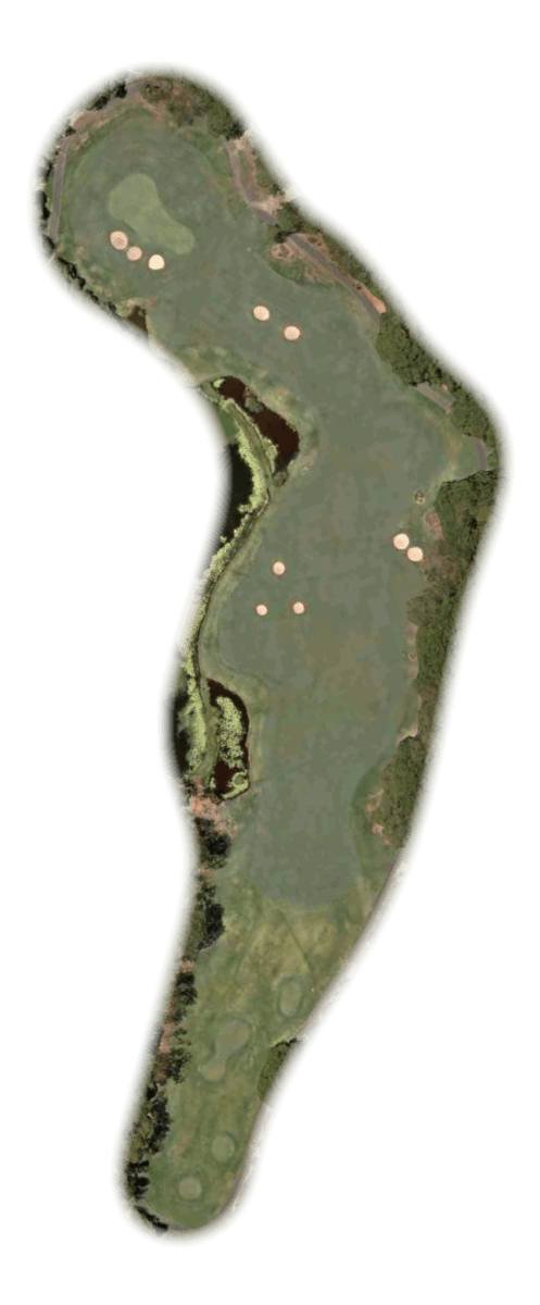 终点洞是标准杆 5 杆的第 18 洞,可以欣赏到左侧湖面和远处俱乐部会所的壮丽景色。距离比赛结束还有 500 多米,还有很多地方可以观赏和探索。这为愉快的一天画上了圆满的句号。
