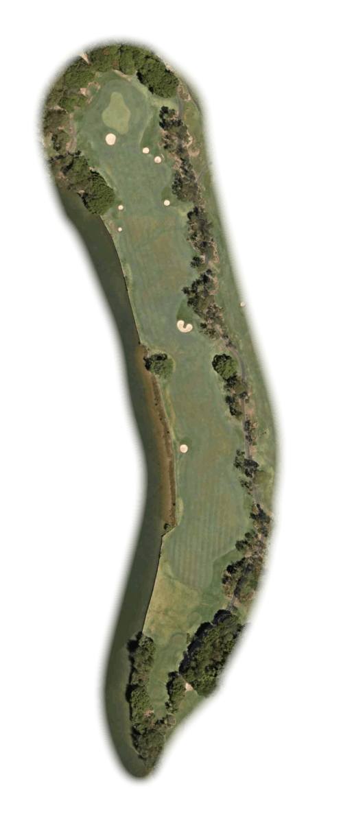 希望岛的标志性球洞,标准杆 3 杆的第 17 洞,对任何高尔夫球手来说都是一个挑战,是一次勇气或愚蠢的体验。距离黑色发球台 224 米,距离白色发球台 180 米,而且要跨过水面很长一段距离,由于当时正刮着逆风,许多球员很难到达果岭。因此,球手可能会考虑将其作为标准杆 4 杆而不是标准杆 3 杆打球,但话说回来,打高尔夫就是要做出决定。