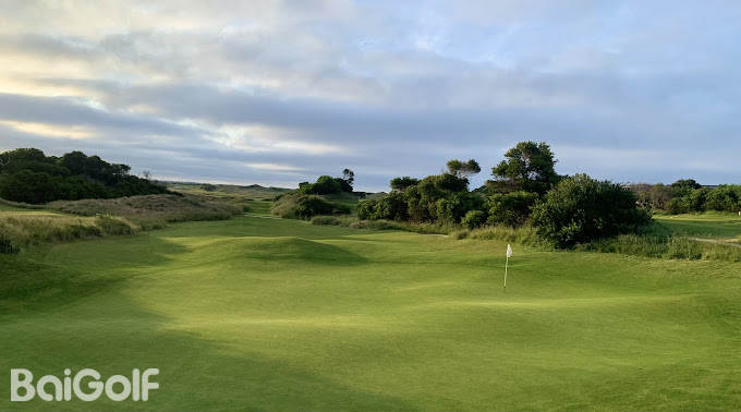 由比尔·库尔设计的14 洞布哥阮短球场,包括 12 个三杆洞和两个四杆洞(分别位于 4 号洞和 8 号洞),位于相邻的 Lost Farm 球场前九洞和后九洞之间的海岸沙丘中。该球场占据了整个 Barnbougle 庄园的一些最高点,距离海岸线稍远,可以欣赏到 Lost Farm 球场和安德森湾的壮丽景色。