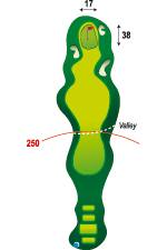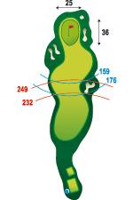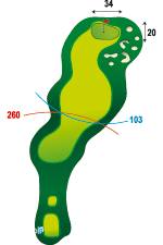 球场布局包括树木成行的起伏球道、大型多选发球台、巨大的湖泊、大量的果岭沙坑和宽阔的果岭。球场长度从 5,217 米(红色)到 6,357 米(蓝色),适合各种水平的球员。从第一个发球台开始,这座设计精良的球场的美丽和挑战就一览无余。球道两侧长满高大成熟的树木,让人惊叹不已。