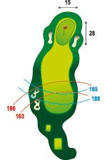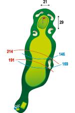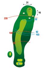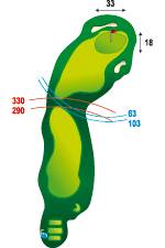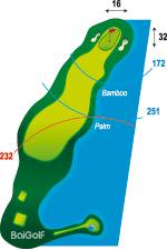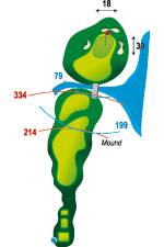 后九洞中两个最突出的洞是 12 号洞和 18 号洞。前者是五杆洞,有一个岛式发球台,需要大力击球才能将球击出水面,而且不能击中右侧的界外球。换句话说,完美的开球是唯一可以击球的球。最后一个洞,高尔夫球手需要穿过一个小洞,击球到有四个大沙坑保护的果岭上。不仅进洞难度大,而且果岭有三层,走错一层肯定会三推甚至更糟。