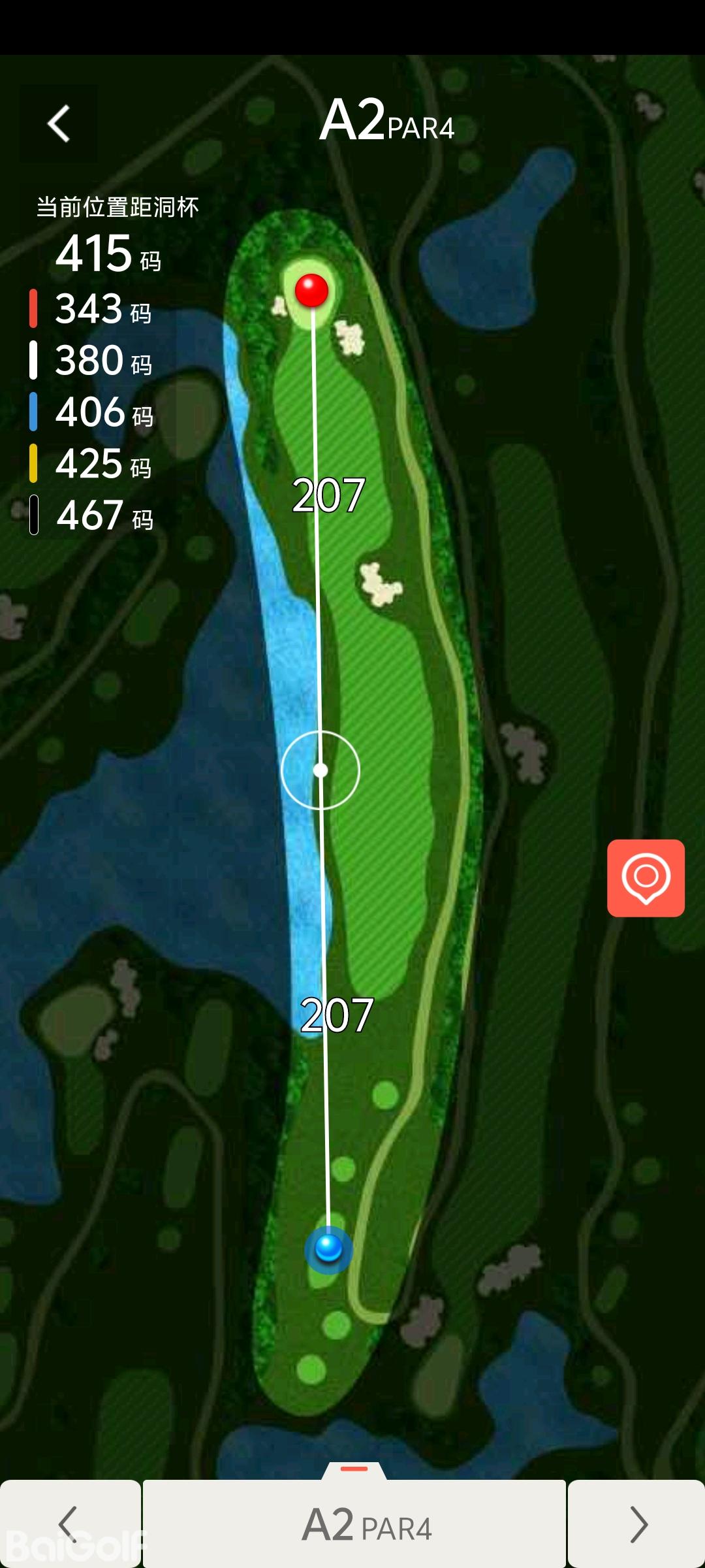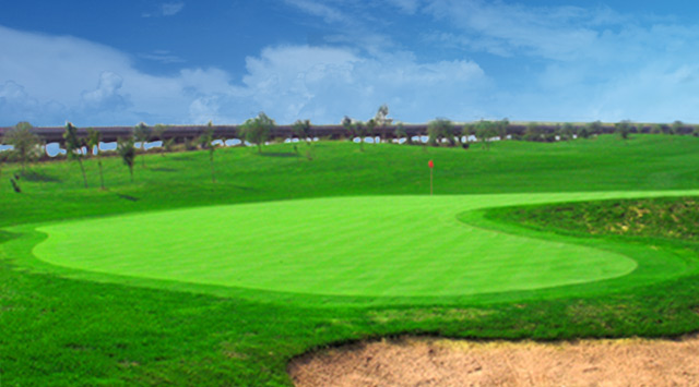 A场(金鹰)球道依地势上下自然起伏,视野开阔,宽大无比的发球台,为高尔夫赛事及活动而设计。果岭的大小依球道特点而定,且旗杆区的不同选择使难易差异悬殊。23万平方米的水面高低错落,蜿蜒于球道间。球场难易适中,适合各类球友使用。