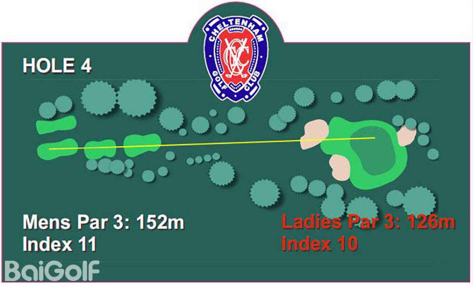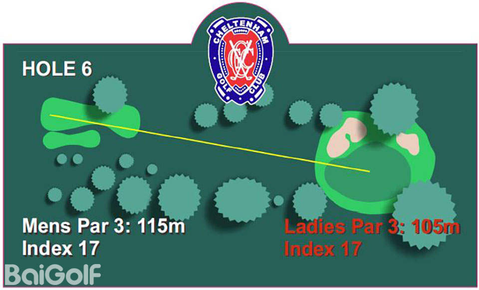 亮点洞包括非常短的三杆洞第 6 洞(左侧为界外洞);严重左侧狗腿形五杆洞第 7 洞(围绕相邻的运动场);以及四杆洞收官洞(记录中最长的两杆洞),球道从发球区向右略微弯曲,朝向主场果岭。