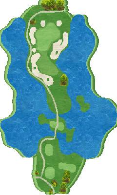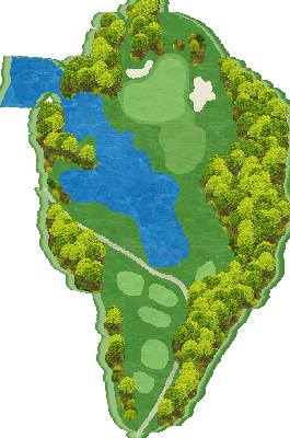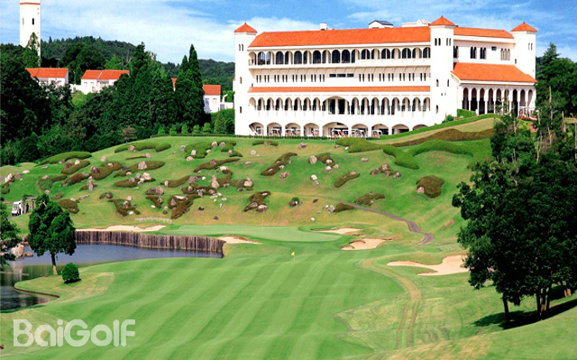 丘陵球场。充分利用了广阔场地的自然条件进行布局,因此各个球洞都被茂密的树林分隔开来。正因如此,每个球洞都营造出了独立且静谧的氛围。球场中,池塘以及设置在各处的沙坑都很有效,具有很高的战略性。发球台平均每个球洞有五个,果岭也有起伏变化。在前九洞,从餐厅可以一览无余的 7 号、8 号和 9 号洞是这里的招牌球洞。在后九洞,像左侧有一连串池塘的 18 号洞等球洞,树木与池塘形成的对比十分美丽,而且有很多颇具难度的球洞。