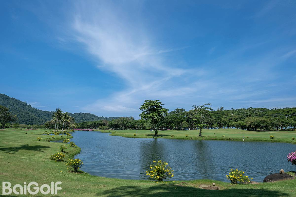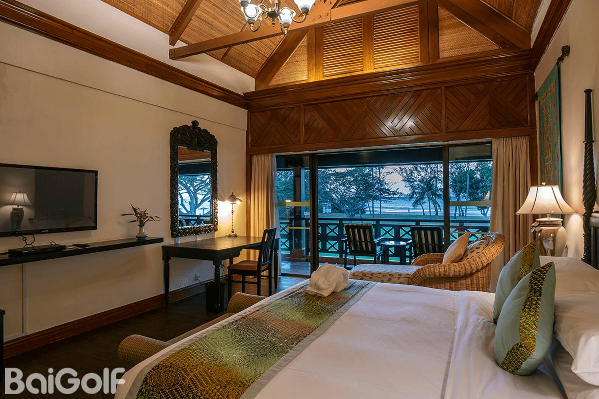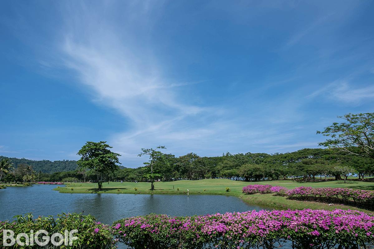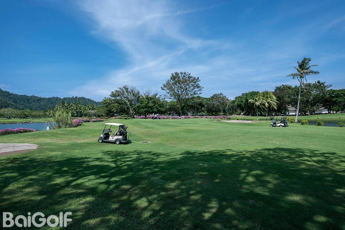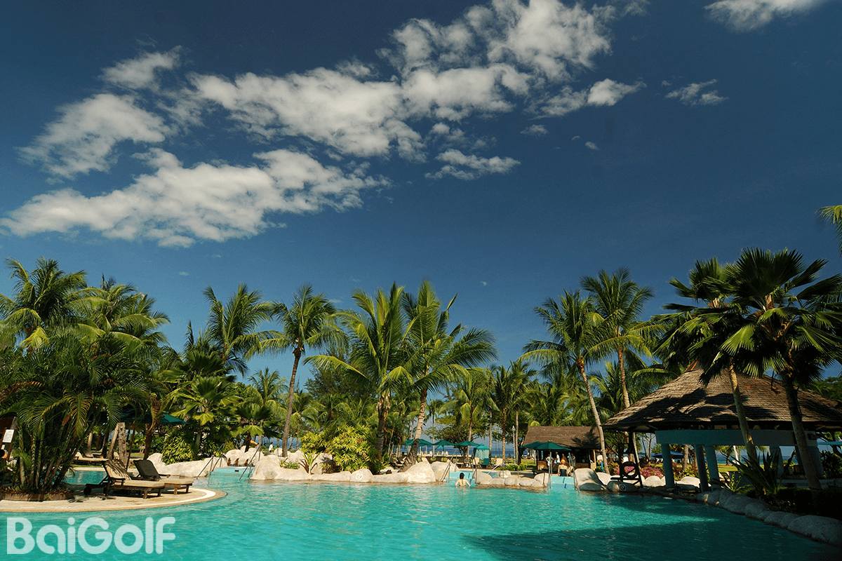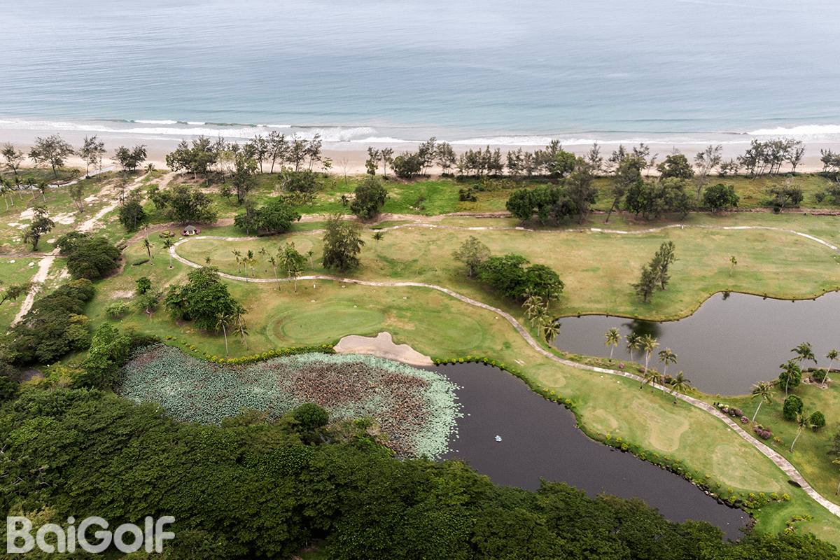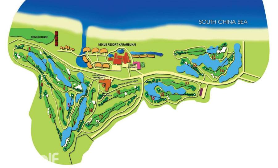 球场从山区延伸至风景如画的沙滩,全长6063公里,球场的调整和草皮的保养在沙巴州是独一无二的。该球场从内地开球并沿着沙滩从第三洞打至第五洞,背景是高峻的京那巴鲁鲁峰。球场坐落于亿万年历史的原始雨林与南中国海之间,球手们可以欣赏到京那巴鲁鲁峰的壮丽景观以及洁白沙滩。该球场的主要特色在于其起伏的球道,以及沿着一系列小湖泊、水道和小丘巧妙设计的布局,增加了球场的挑战性。