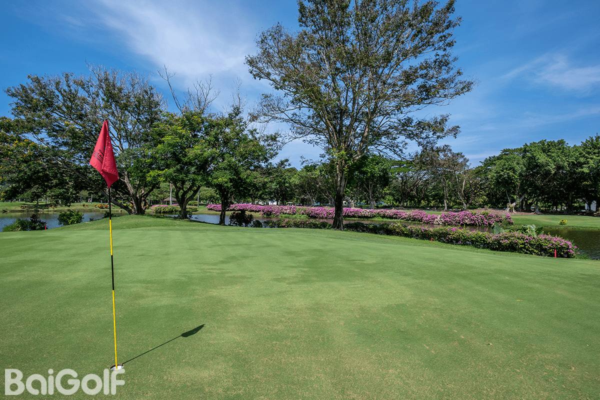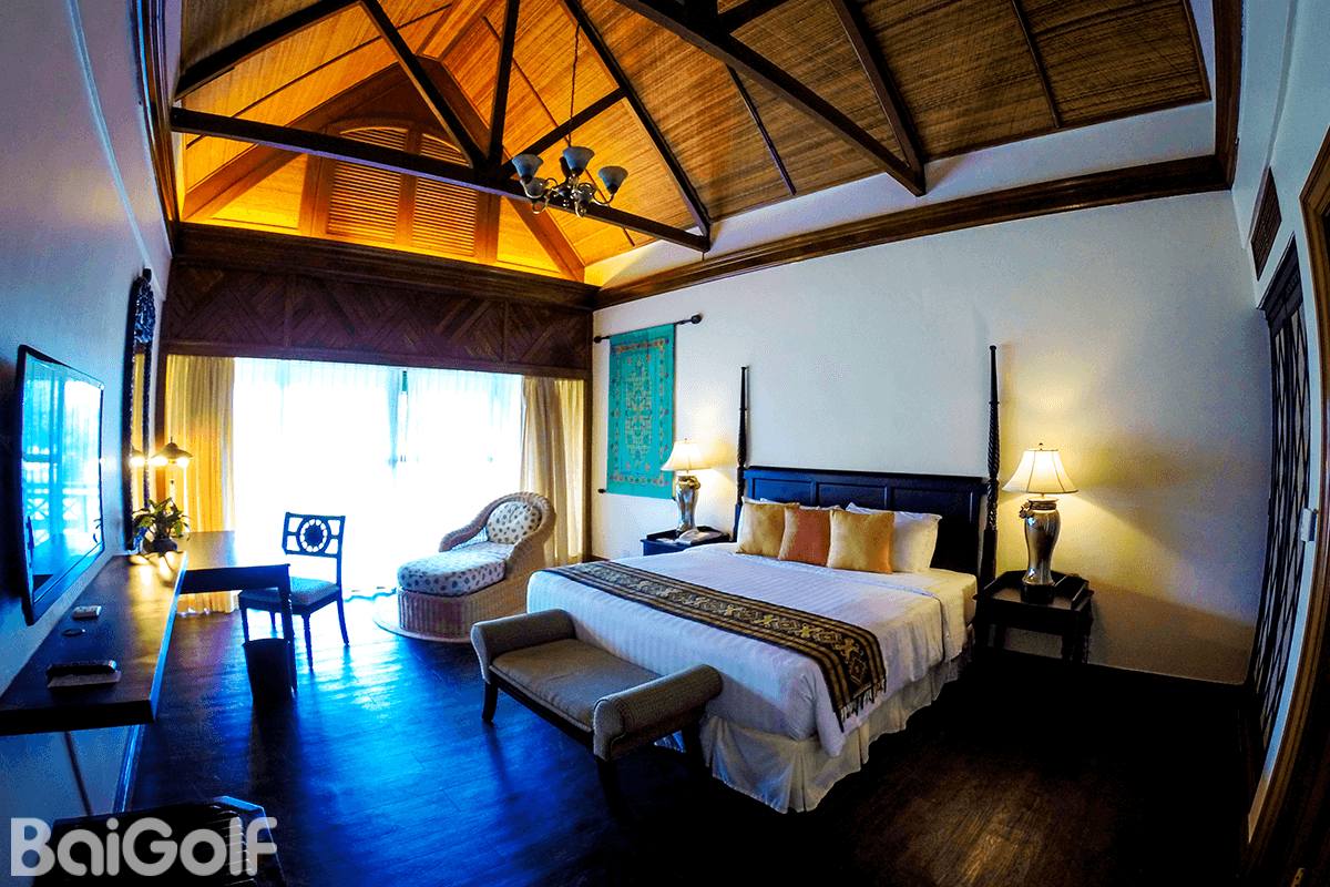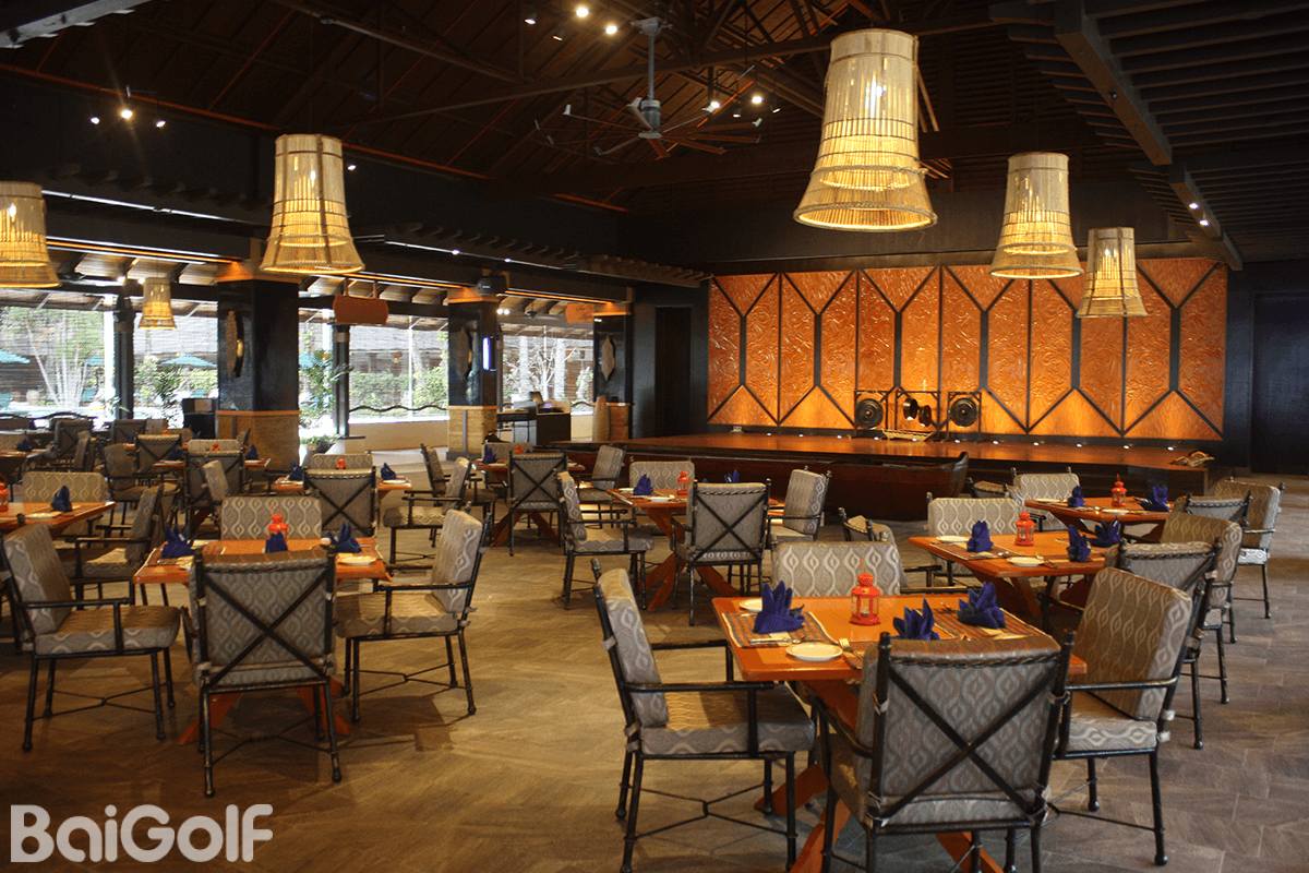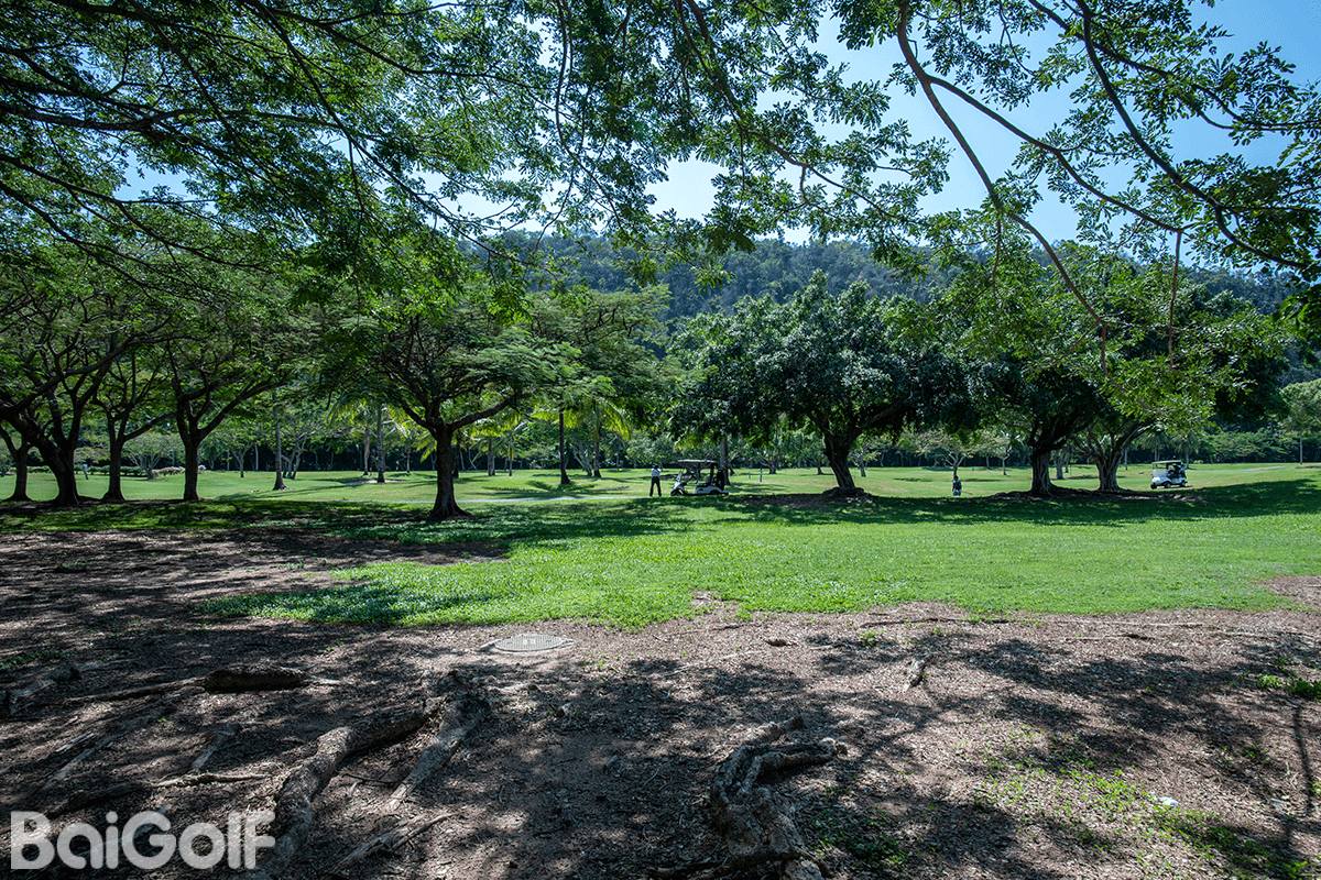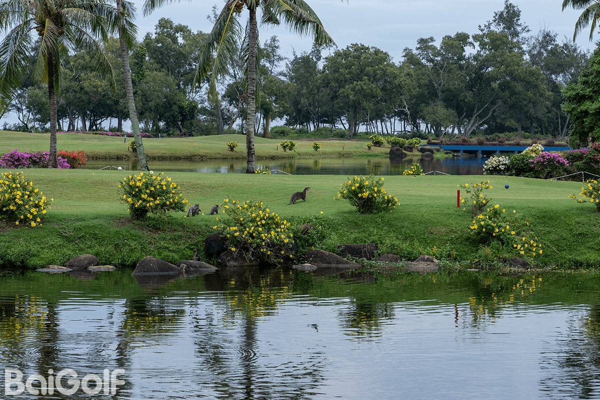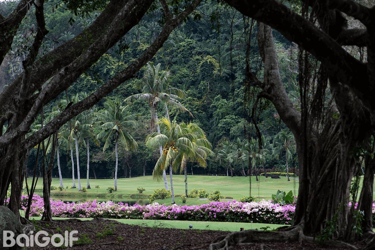 球场从山区延伸至风景如画的沙滩,全长6063公里,球场的调整和草皮的保养在沙巴州是独一无二的。该球场从内地开球并沿着沙滩从第三洞打至第五洞,背景是高峻的京那巴鲁鲁峰。球场坐落于亿万年历史的原始雨林与南中国海之间,球手们可以欣赏到京那巴鲁鲁峰的壮丽景观以及洁白沙滩。该球场的主要特色在于其起伏的球道,以及沿着一系列小湖泊、水道和小丘巧妙设计的布局,增加了球场的挑战性。