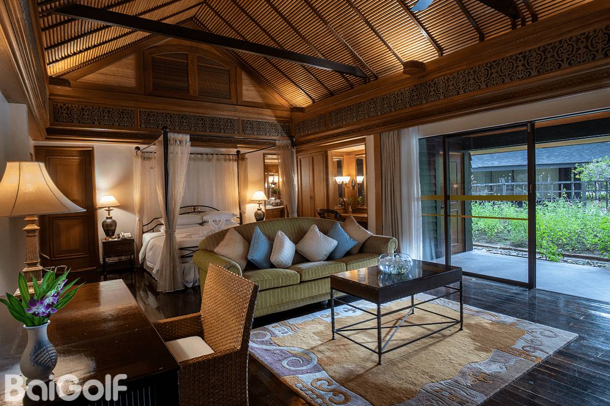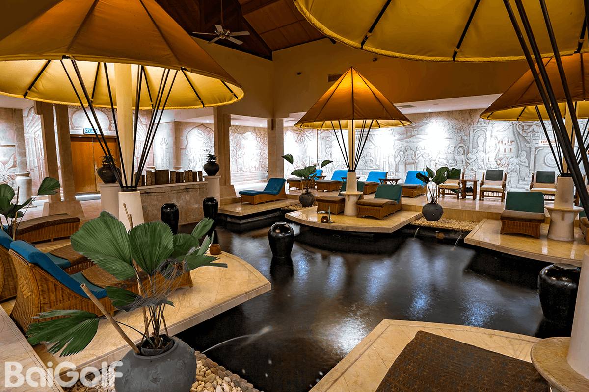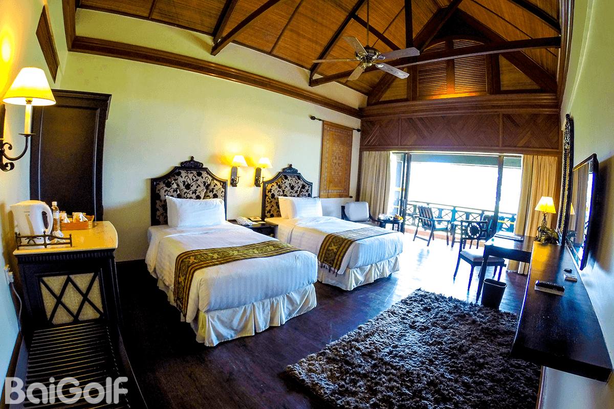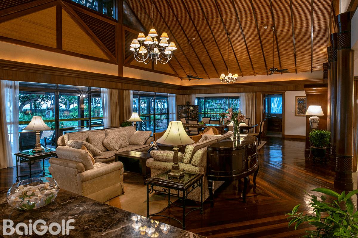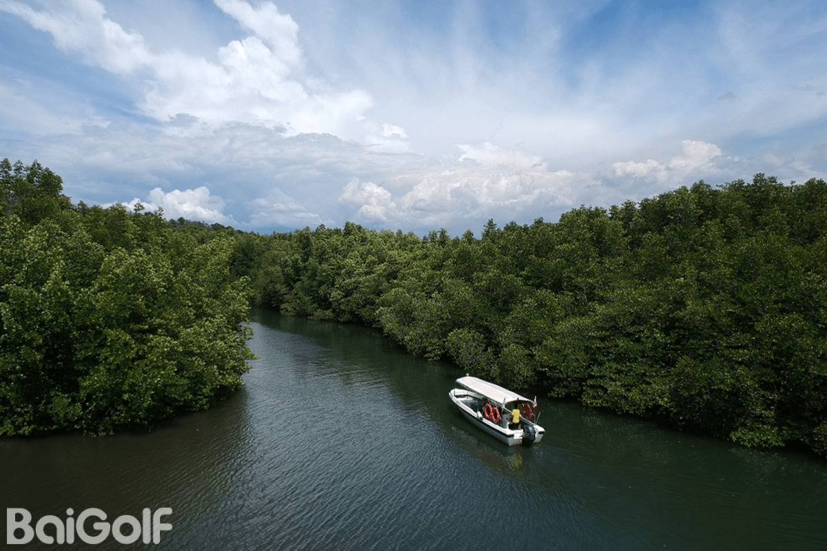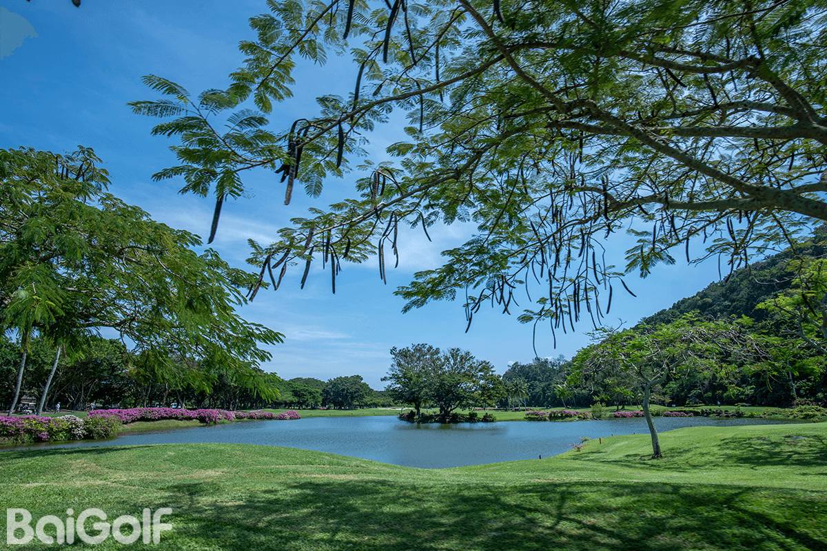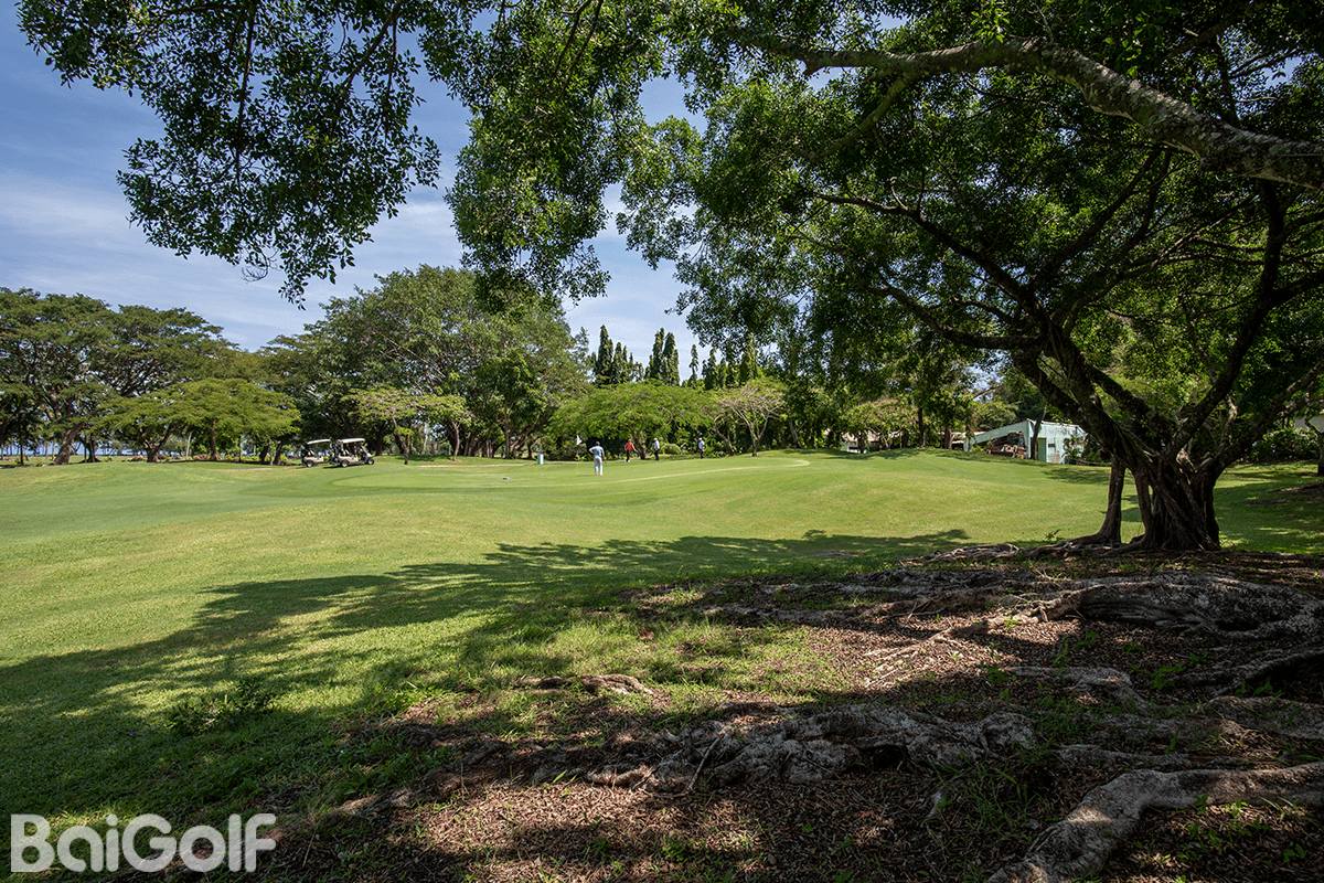 球场从山区延伸至风景如画的沙滩,全长6063公里,球场的调整和草皮的保养在沙巴州是独一无二的。该球场从内地开球并沿着沙滩从第三洞打至第五洞,背景是高峻的京那巴鲁鲁峰。球场坐落于亿万年历史的原始雨林与南中国海之间,球手们可以欣赏到京那巴鲁鲁峰的壮丽景观以及洁白沙滩。该球场的主要特色在于其起伏的球道,以及沿着一系列小湖泊、水道和小丘巧妙设计的布局,增加了球场的挑战性。