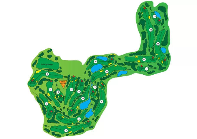 这座 5,848 米长的 72 杆球场在战略位置设置了沙坑、水障阻碍了球道,并且有起伏的球道上下坡,这使得球杆的选择和站位变得更加重要,以便准确地将球击中果岭。槟城高尔夫俱乐部于 1992 年举办了第 31 届马来西亚公开赛,该俱乐部以其出色的维护而闻名,举办专业锦标赛并欢迎来自世界各地的球员。除了高尔夫球场外,这里还有一个 32 个球位的双层练习场和一个练习果岭。