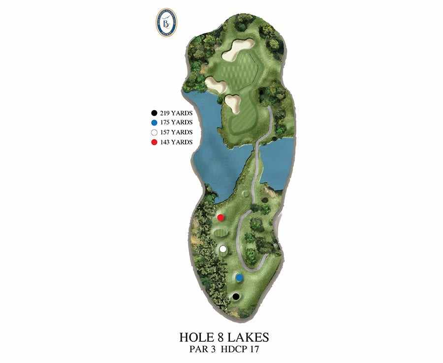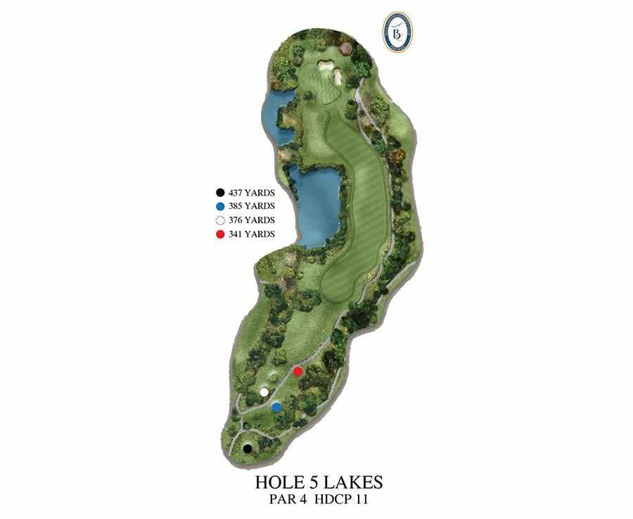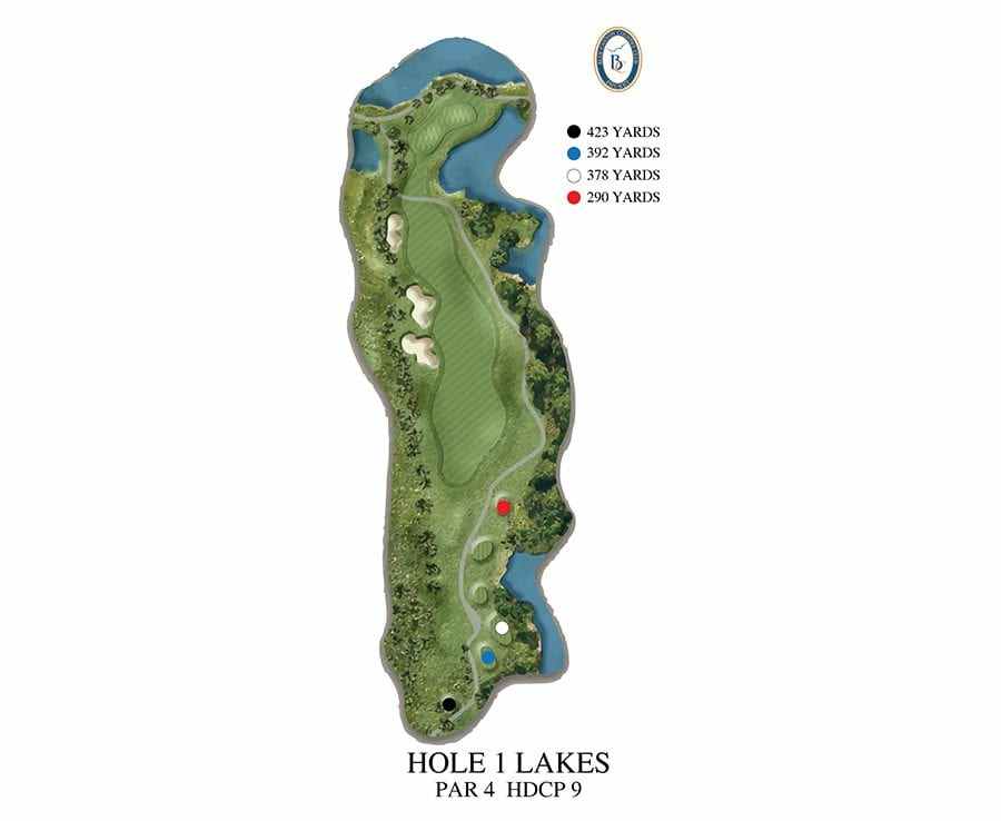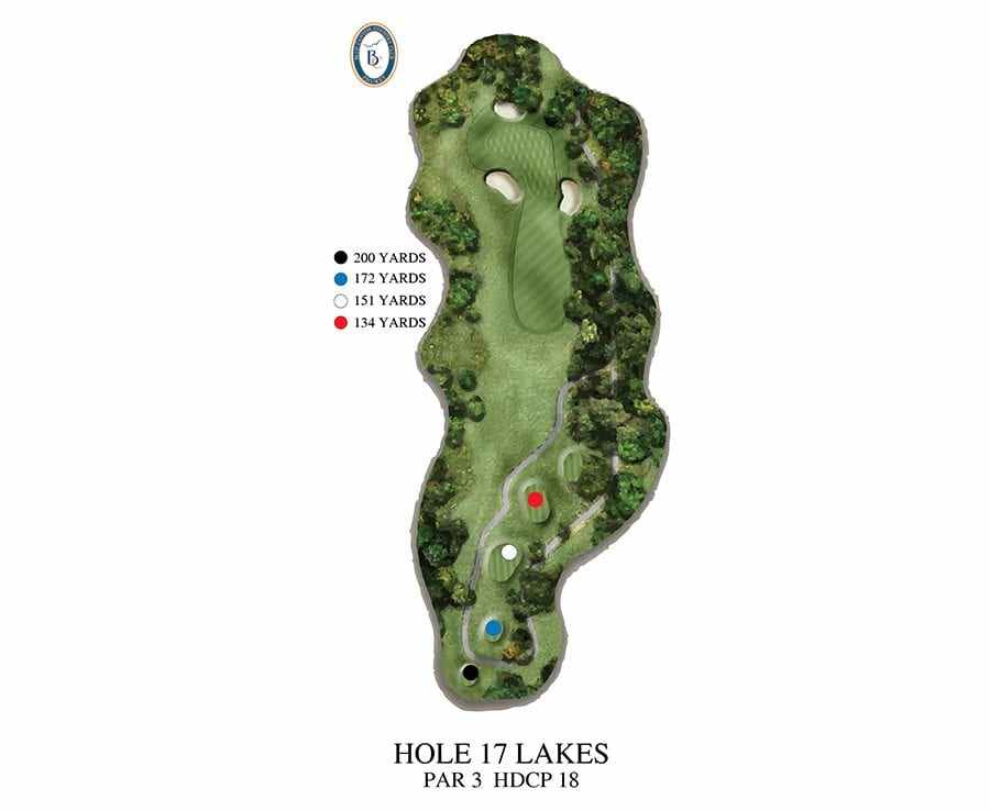 18 个洞中的 17 个洞都有水障碍。该球场拥有该地区最好的终结球洞之一,可能是高尔夫球场中最难的天然 4 杆洞。湖泊球场的发球台具有战略意义,有许多的高难度球洞,球道宽阔,果岭肥美,无论是高手还是新手,都能在这里找到适合自己的球洞。