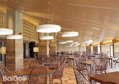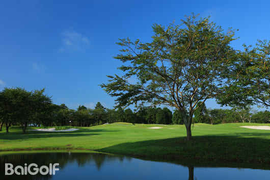 球场地势起伏仅 2 米,整体平坦开阔,球道宽敞,充分考验着高尔夫球手的击球距离。球场各处巧妙布局的水障碍,为球手们带来极富挑战性的策略选择,完美诠释了高尔夫运动的魅力与精髓。
