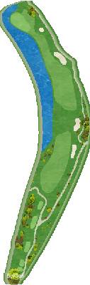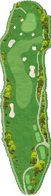 这是一座丘陵球场。虽然场地面积紧凑,但也有一些气势恢宏的球洞,让人感觉不到场地的紧凑,整体布局百打不厌。前九洞中,第 5、6 洞的小溪以及第 8、9 洞的池塘是攻克的要点,有很多球洞考验击球的方向性。后九洞比前九洞更加平坦,球道距离长且富有气势。虽然有机会两杆上果岭,但第 13 洞有小溪横穿,需要考虑发球的落地点,而第 16 洞则要求发球时打出远距离的击球,这两个洞尤其刺激。这里的三杆洞也颇具难度。