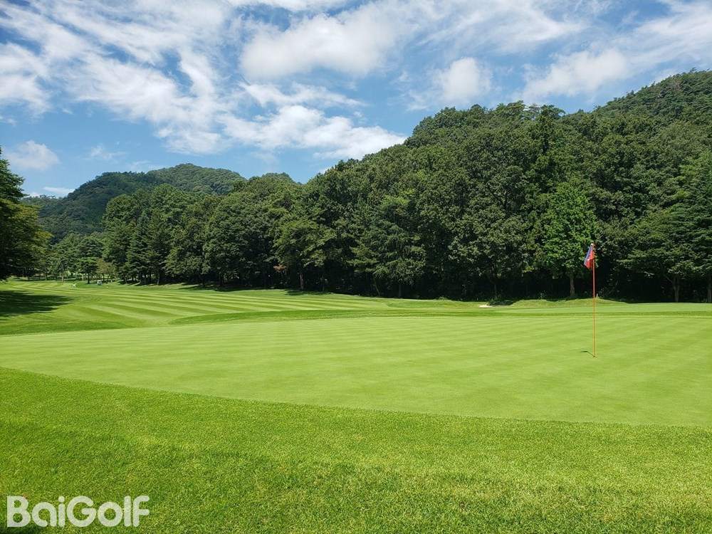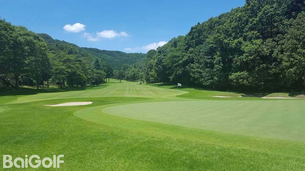 在被风景秀丽的群山环绕、面积达 158 万平方米的广阔场地上,充分利用得天独厚的自然条件,精心布局了 18 个球洞,打造出极为奢华的球道。前九洞的每个球洞都被茂密的树木所环绕。不过,球道宽阔且平坦,距离也足够长。后九洞中池塘的布局十分巧妙,有很多球洞的果岭周围由杉树、枞树等高大树木 “守护” 着。无论是前九洞还是后九洞,果岭都面积较大且有起伏。