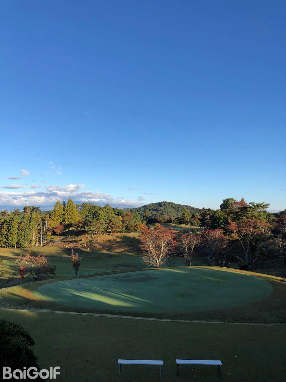 丘陵球场。前九洞整体以平坦球洞为主,OB区域较少。短距离球洞与长距离球洞交替布局,巧妙平衡了心理上的放松与紧张感。后九洞则包含狗腿洞、下坡击球等设计,每个球洞都需谨慎选择球杆并精准瞄准目标。虽然距离较短,但更需注重击球方向,以减轻心理压力。