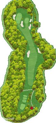 丘陵球场。整体来说球洞较为平坦,但布局极具战略性。不仅需要强劲的击球和远距离,还要求方向的精准度和头脑策略。西球场景色优美,以豪迈的下坡击球开始。中球场比起距离更注重方向性,要求细腻的进攻策略。东球场平坦的球洞连绵不断,搭配4处大小不一的水池和小溪,构成充满变化的动态球场。