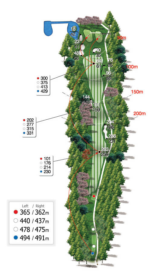 比恩球场:虽然地处山地,但平坦的球道也为初学者和女性高尔夫球手提供了愉悦的体验。部分球洞果岭前的沙坑和果岭的坡度需要策略性思考,使高尔夫更具乐趣。