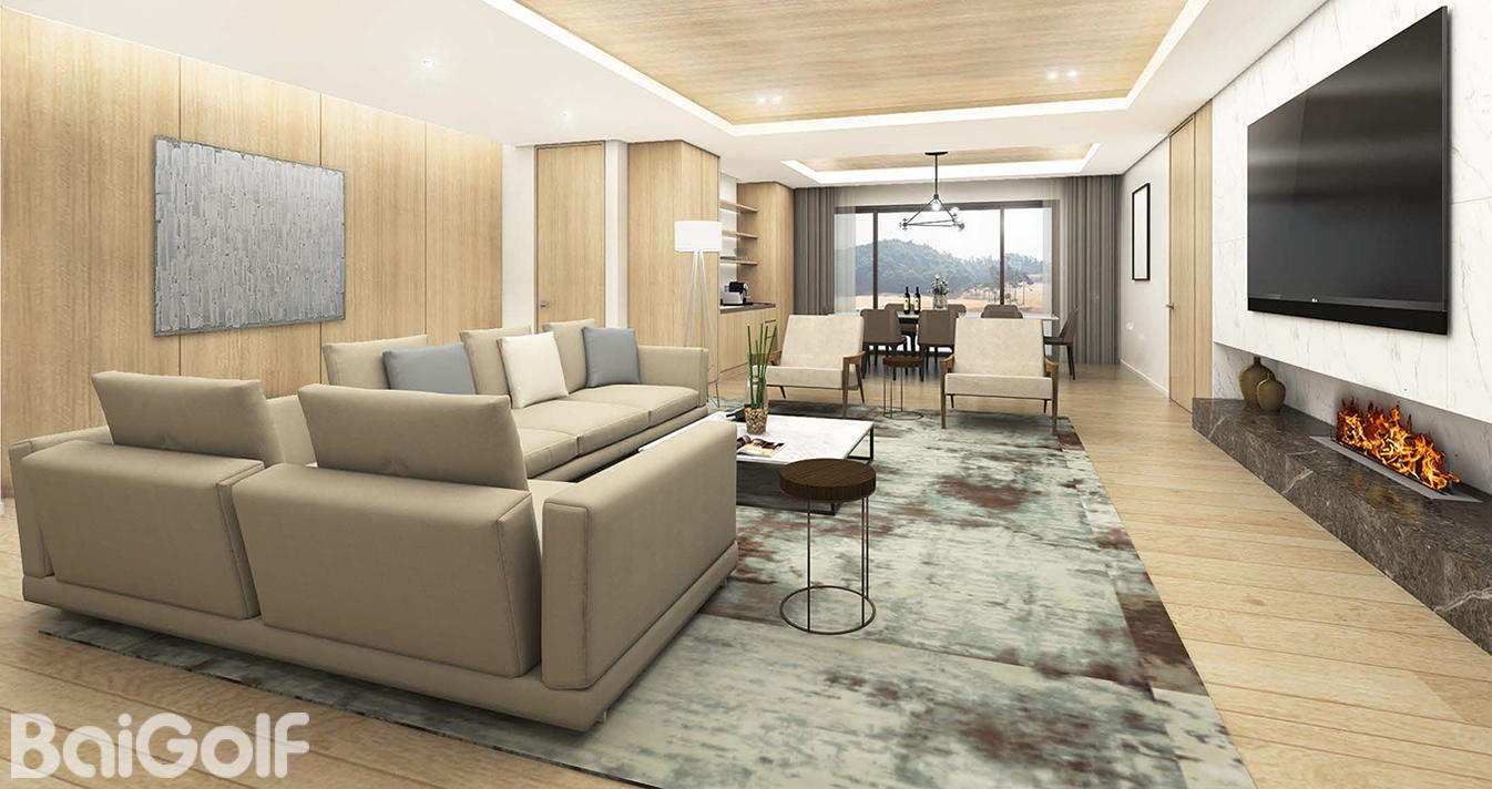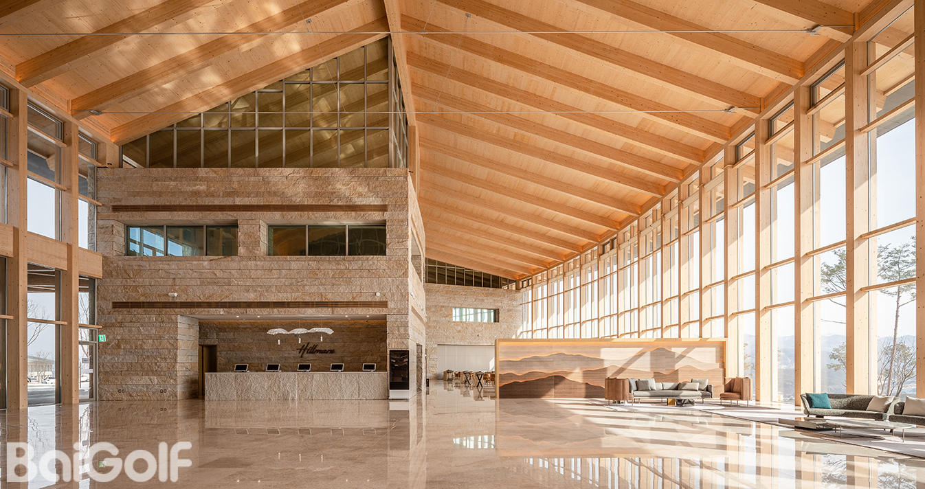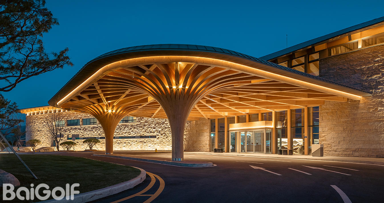 会所的结构形式和美学理念与周围的自然环境和谐融合。其雄伟的规模和优雅精致的细节,营造出一种内敛而高雅的美感。木质结构支撑着会所的入口,使自然与建筑之间形成和谐统一的氛围。精心设计的室内空间巧妙地利用自然光,营造出柔和明亮的氛围。宏伟的建筑结构,搭配简洁精准的饰面、流畅的曲线和温暖明亮的色彩,共同打造出一个静谧舒适的休憩之所。
