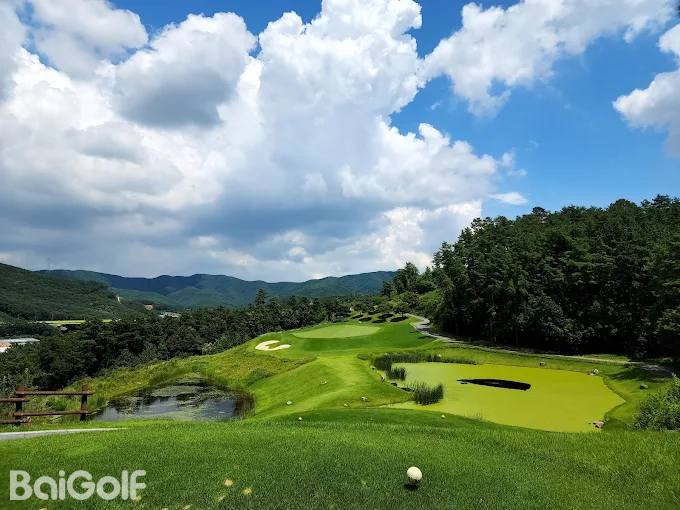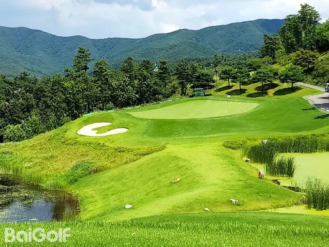 这是一个生态友好型高尔夫球场,保留了山地地形的自然地貌、树木和岩石。所有球洞的发球台都能看到果岭,“越过障碍洞”和“岛屿洞”充满挑战和刺激,“鸳鸯洞”则巧妙地融合了湖泊、岩石和沙坑,营造出和谐的氛围。这座高尔夫球场设计精美,大多数球洞都能饱览周边城市的壮丽全景。