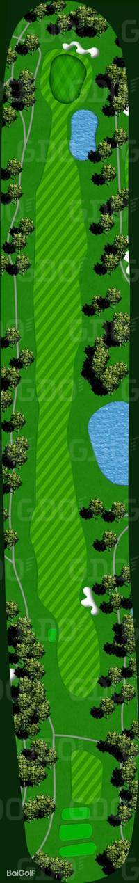池塘相关的球洞:后九洞的设计更加复杂,许多球洞与池塘紧密相连,增加了击球的挑战性。特别是第16洞,发球台右前方的池塘直接延伸为溪流,向右侧延伸,并在约200码的地方横跨球道,直至果岭的左前方。这一设计不仅考验球员的击球距离和方向控制,还增加了心理压力,让每一次击球都充满挑战。