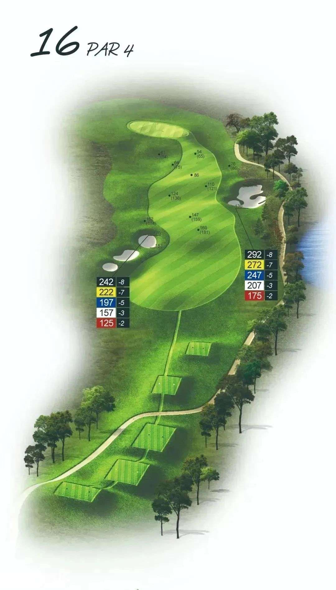 球场签名设计师Rick Robbins坚持“球场与生态可持续发展”的环保高尔夫设计理念,18洞的球道设计充分结合了驿山的生态特点及形态地貌,顺应地势,洞洞精彩,每一洞的设计都极具特色,让打球者真正体会到高球项目的挑战及乐趣。