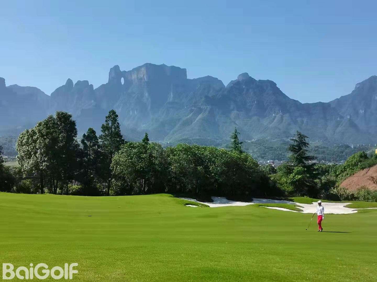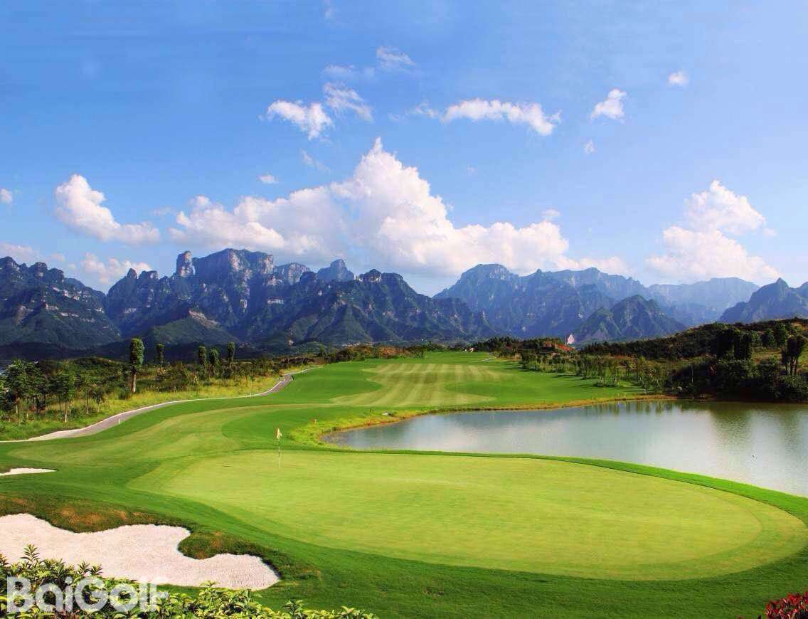 18洞山地风格球场,每个洞均以张家界旅游景点命名,每洞发球台和果岭都能欣赏天门洞自然景观。球场地理位置优越,依山傍水,自然环境优美,与天门山遥相对应,是观赏天门洞的最位置。 球场造型独一无二,起伏顺畅,可满足不同水平的球手需求。