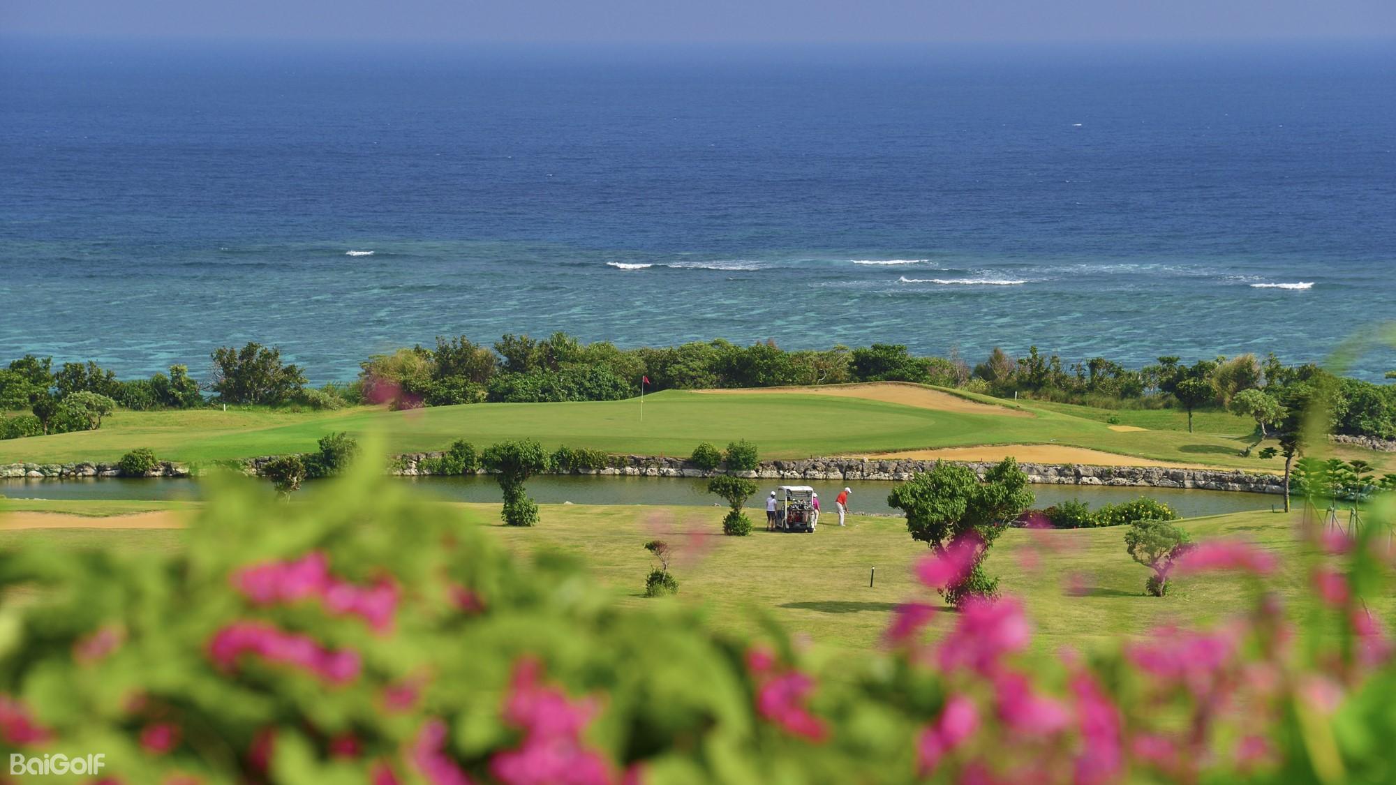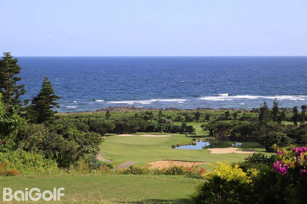 这座球场于1996年开业,由株式会社タイム・アンド・タイド设计,18洞、标准杆71杆,总长约6250码。它的最大特色是所有球洞都能眺望太平洋,球道两侧点缀着榕树、梯梧、九重葛等南国花木,四季皆有不同的色彩。著名的第9号洞面向大海开球,击球瞬间仿佛把球托付给海风;而第12号洞则是全场最具挑战的名洞,果岭前有池塘、后有沙坑,背后更是悬崖,风势强劲,稍有不慎便会吞噬球手的勇气。整体球道起伏适度,既有豪迈的长打空间,也有精巧的策略考验,让初学者与高手都能在此找到乐趣。