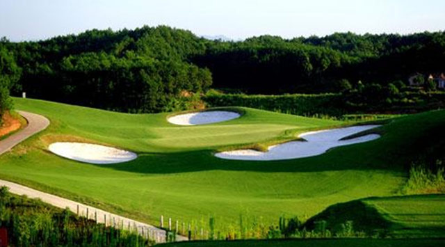 黄山松柏高尔夫俱乐部坐落在黄山雨润国际商务休闲旅游度假区,位于安徽黄山市区西8公里处,距机场仅3分钟车程,紧邻三项世界级桂冠的黄山风景区和世界文化遗产西递、宏村,由香港上市公司—中国雨润食品产业集团(1068.HK)投资建设。黄山高尔夫球会现拥有有彩虹谷及翡翠谷两个国际标准的18洞高尔夫球场,和一个26个打位的练习场。彩虹谷球场由美国Mr.Ronald.Fream总设计,球道总长度6945码,标准杆72杆,其设计风格为山地森林球场,30-40树龄的美国湿地松树116颗穿插其中, 445颗景观树留植在球道中。由60000余颗40年以上松树所形成的自然森林,堪称国内球场一绝。