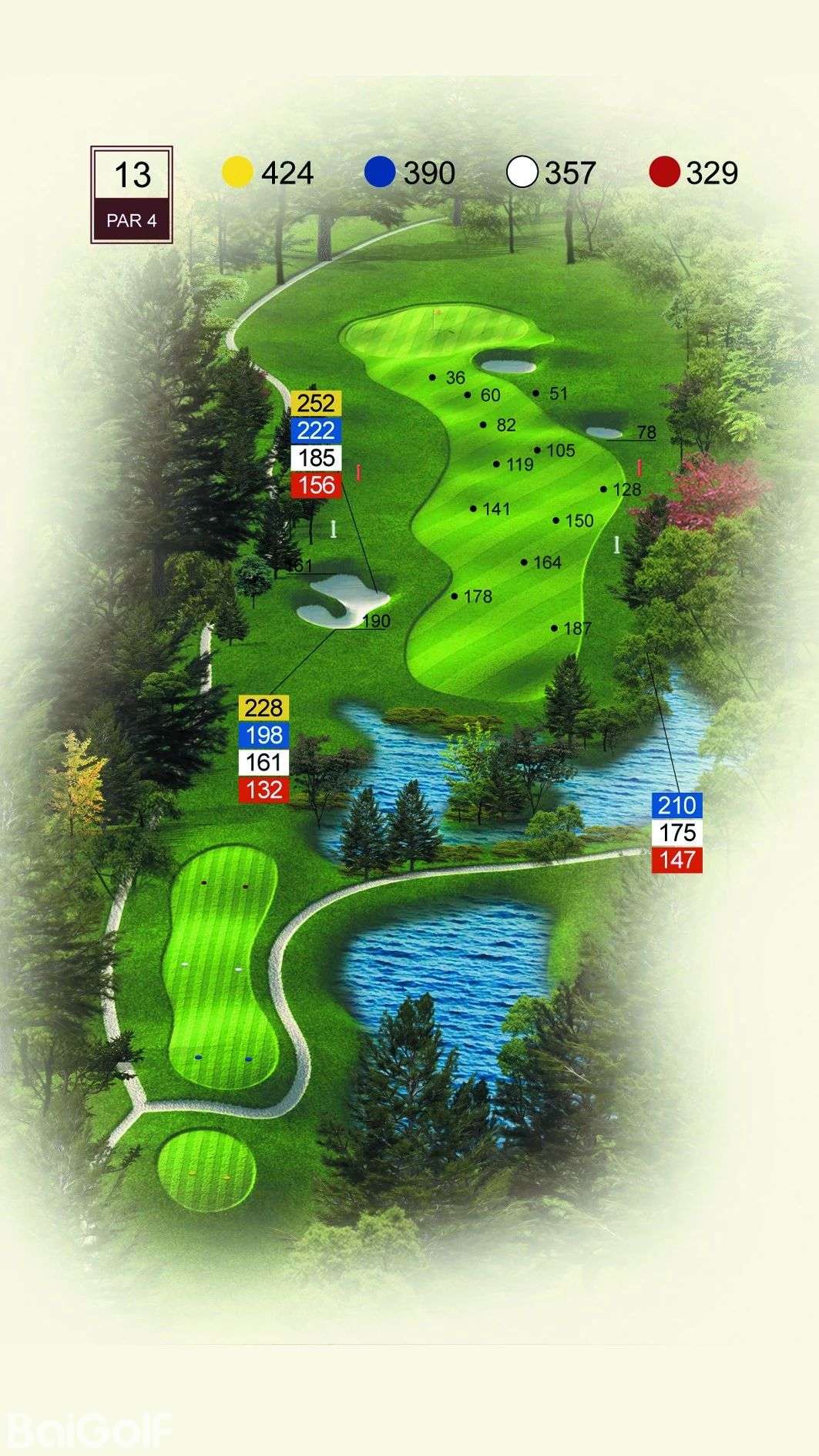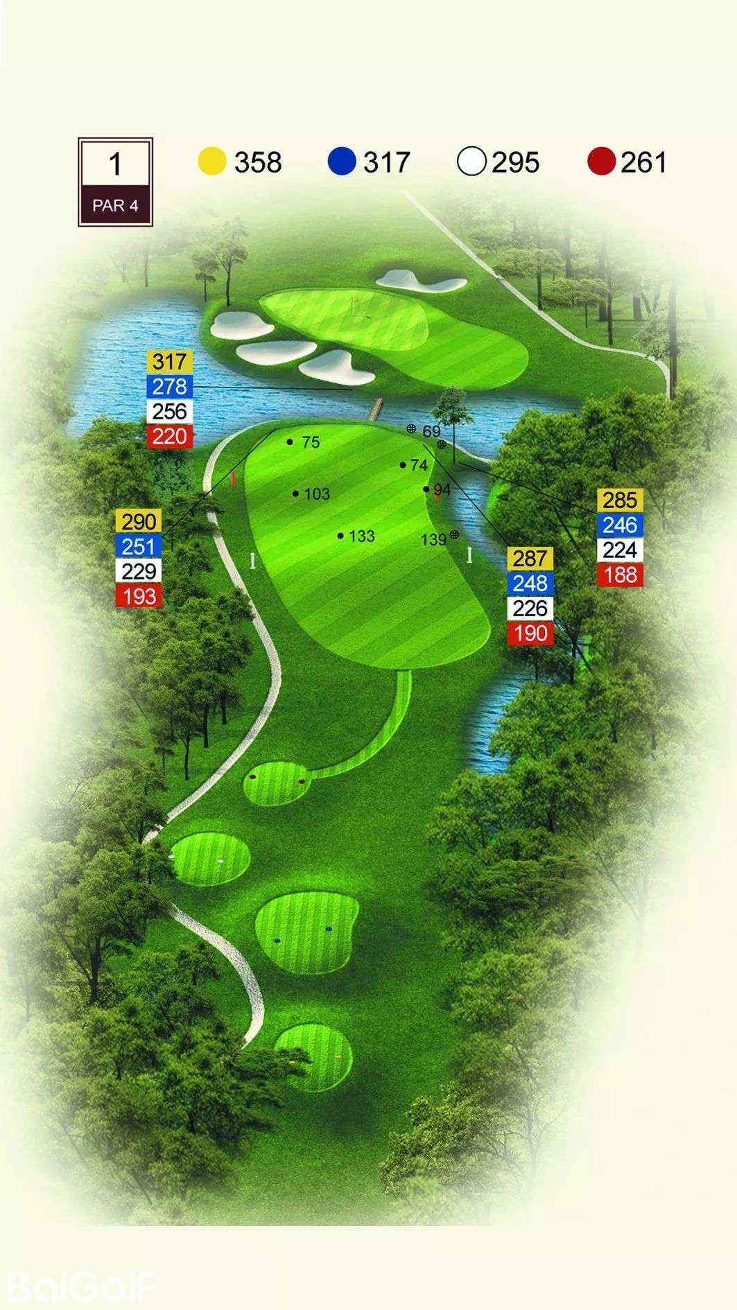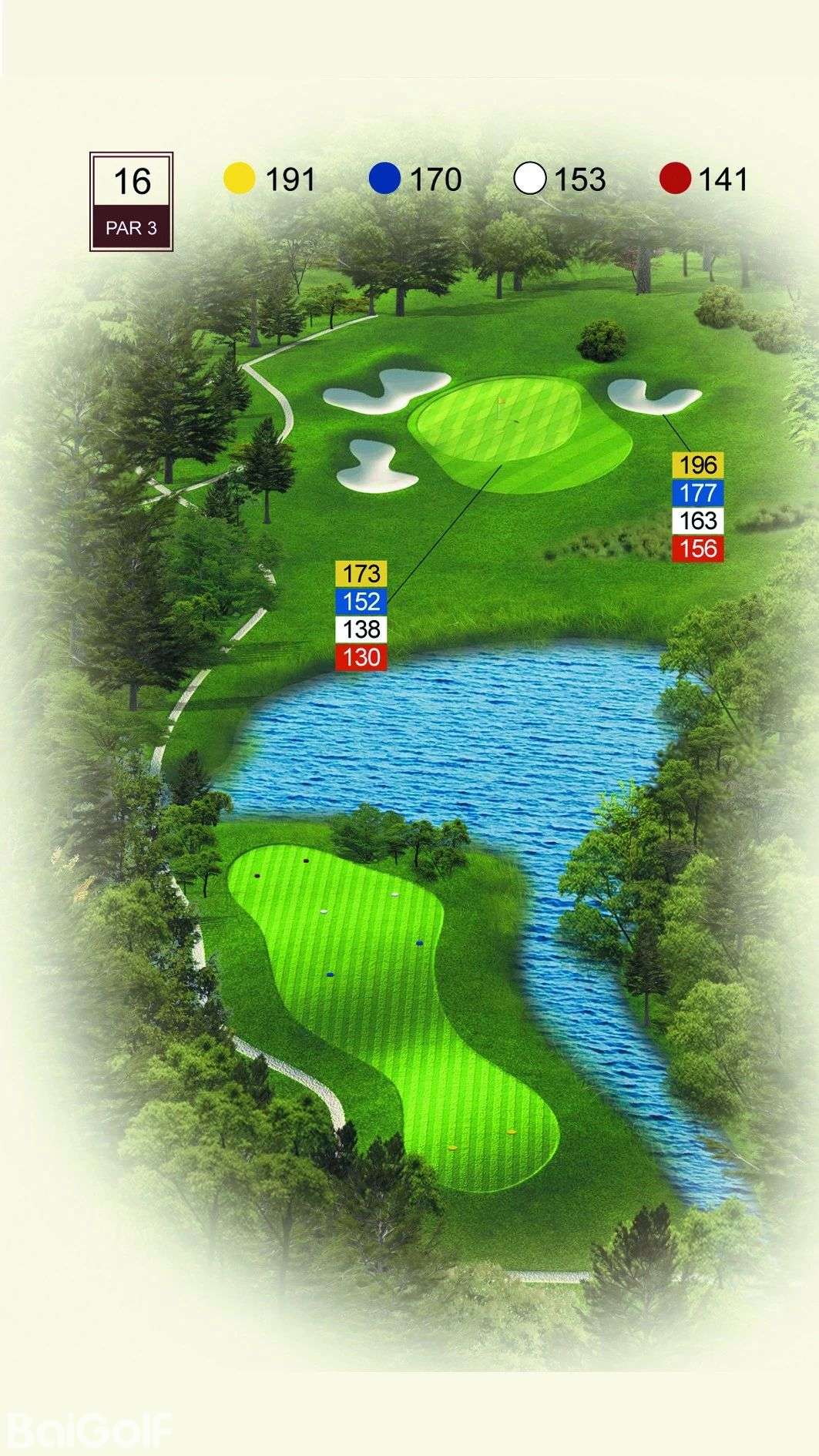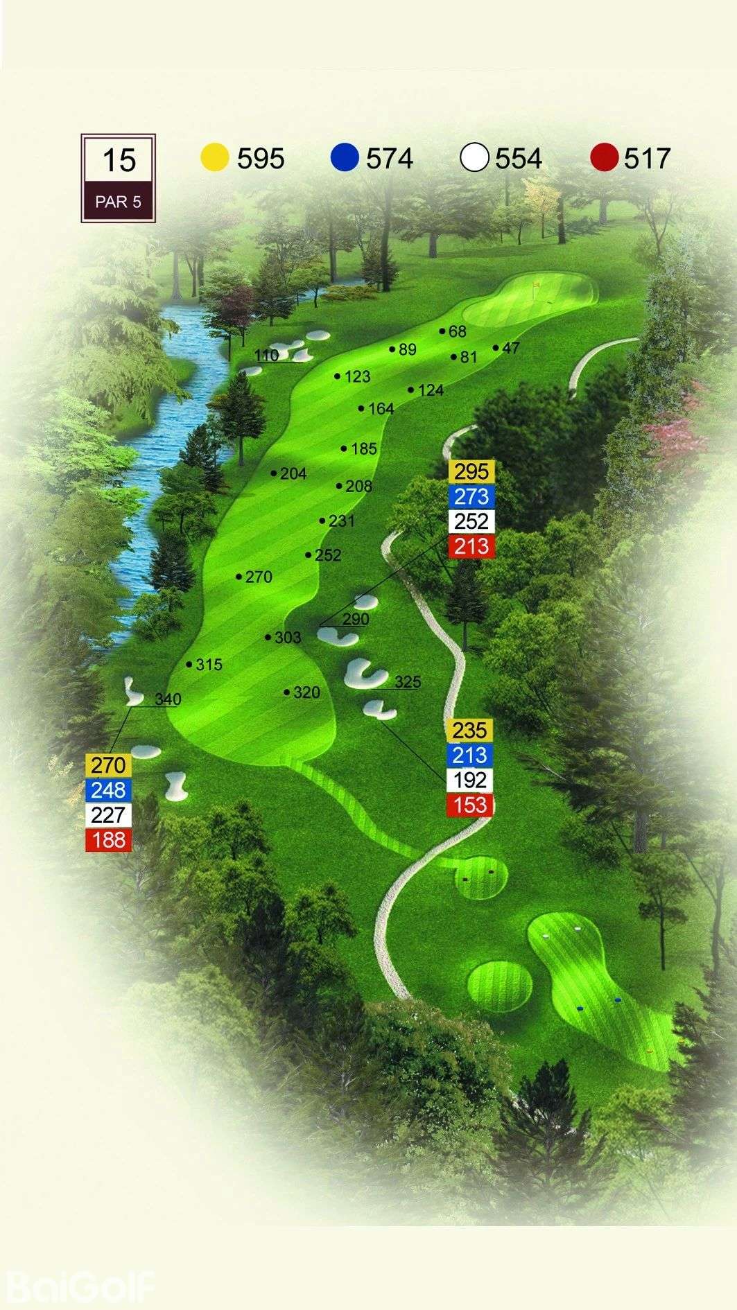 球道中起伏不定的山丘、陡坡及果岭旁四侧的明暗陷井,给予球手一定难度挑战。宽阔无比的落球区和碧水环绕的果岭,令人在享受漂亮球道景观的同时,又使球技备受压力。