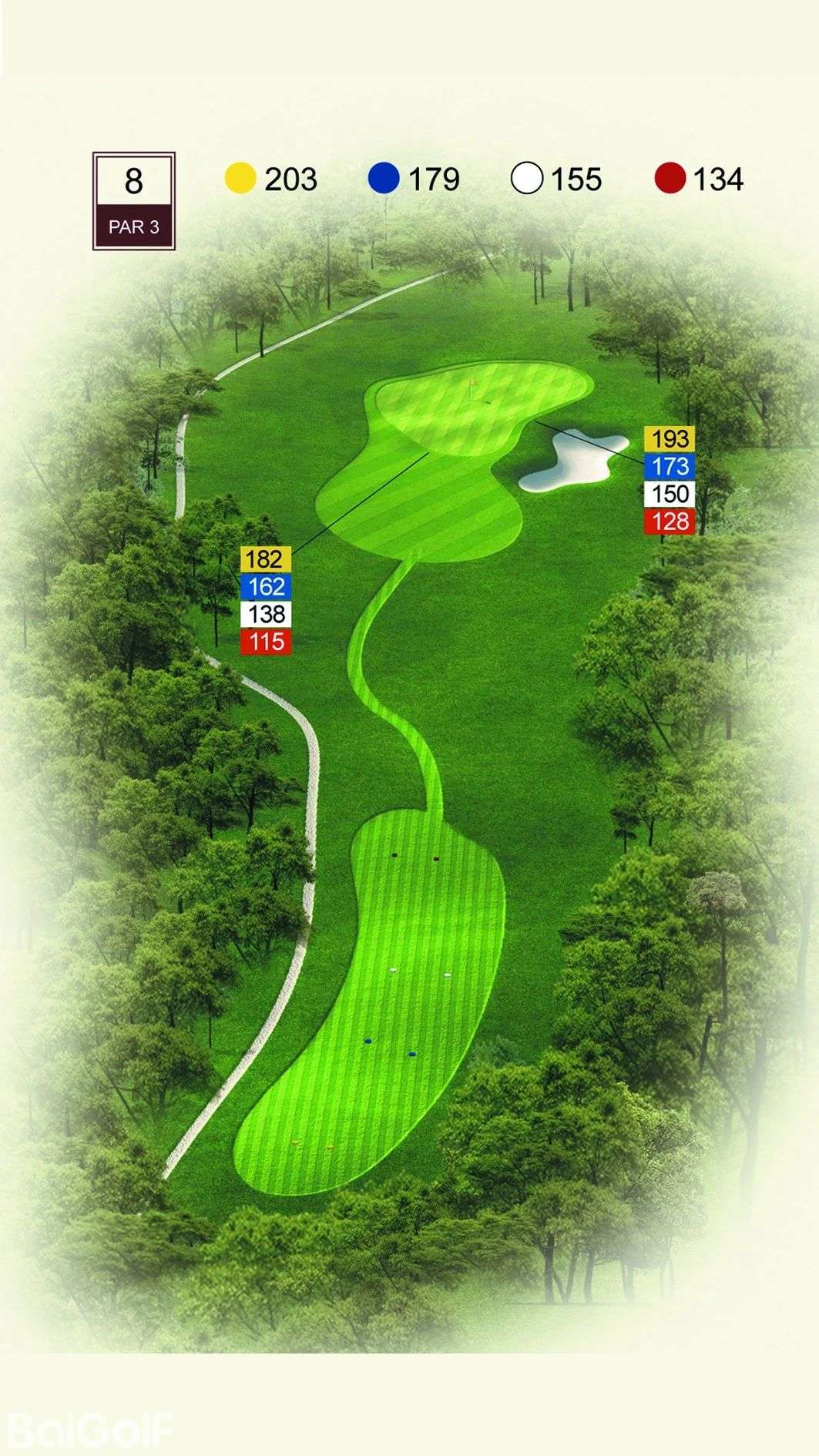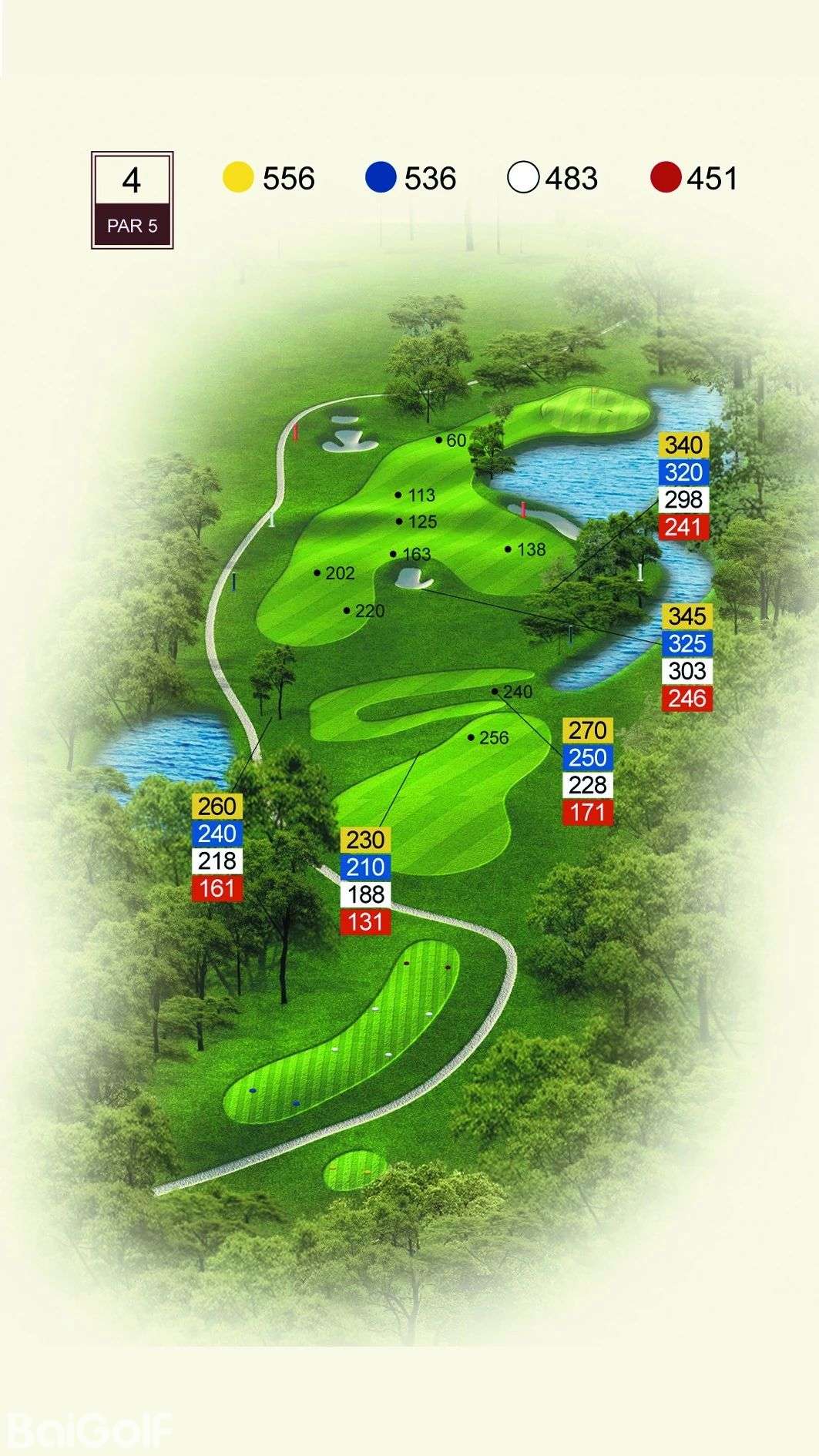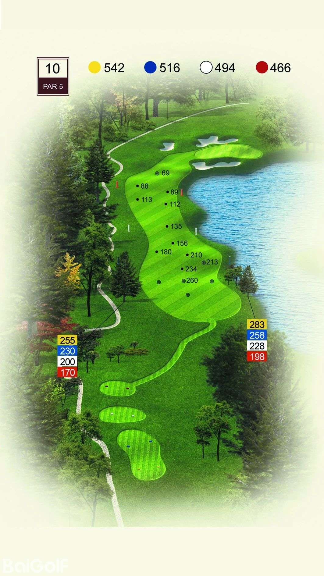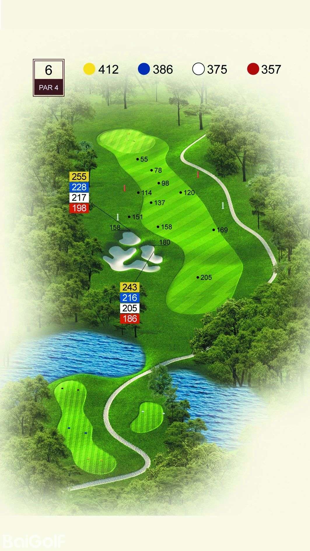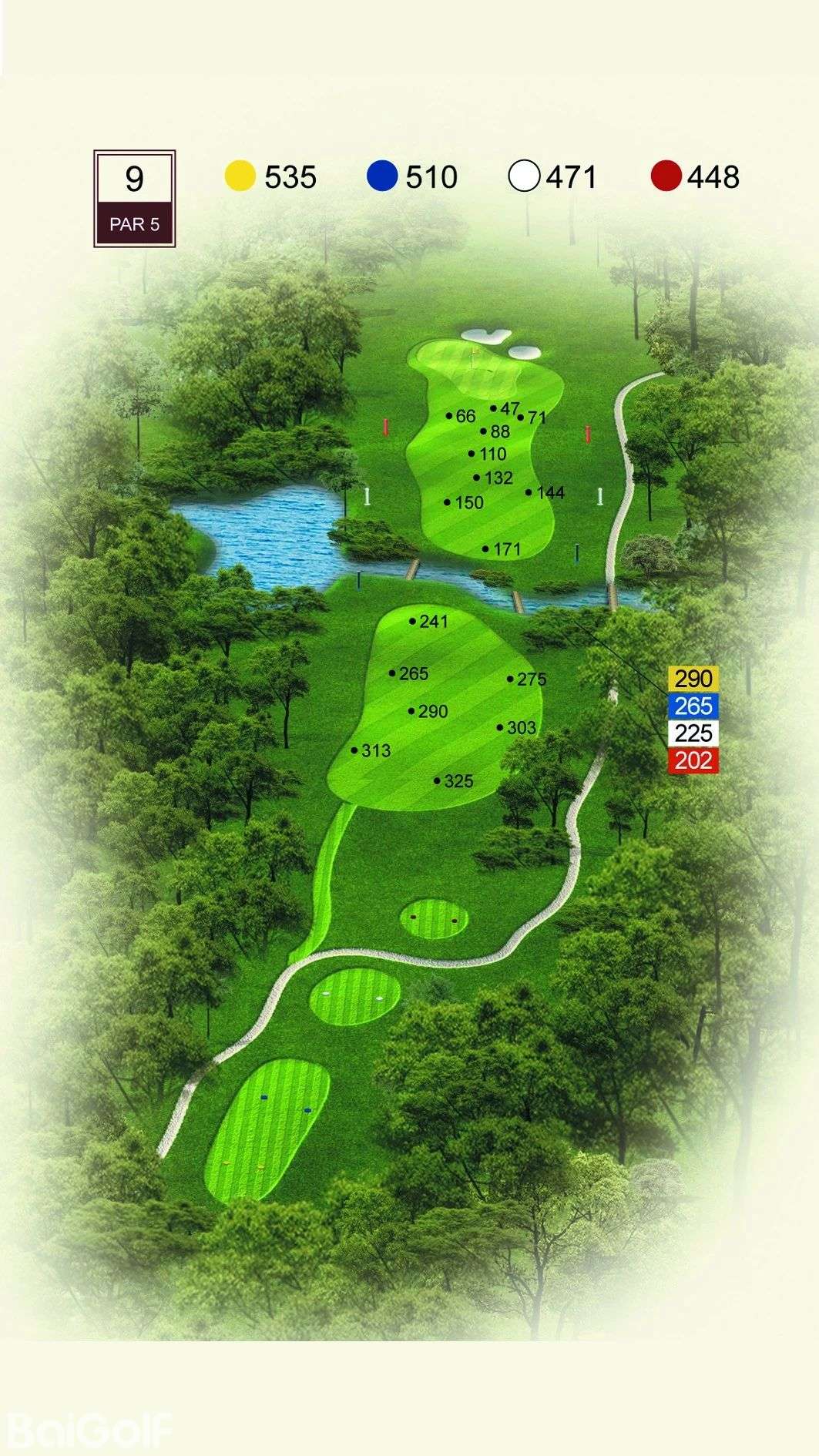 球道中起伏不定的山丘、陡坡及果岭旁四侧的明暗陷井,给予球手一定难度挑战。宽阔无比的落球区和碧水环绕的果岭,令人在享受漂亮球道景观的同时,又使球技备受压力。