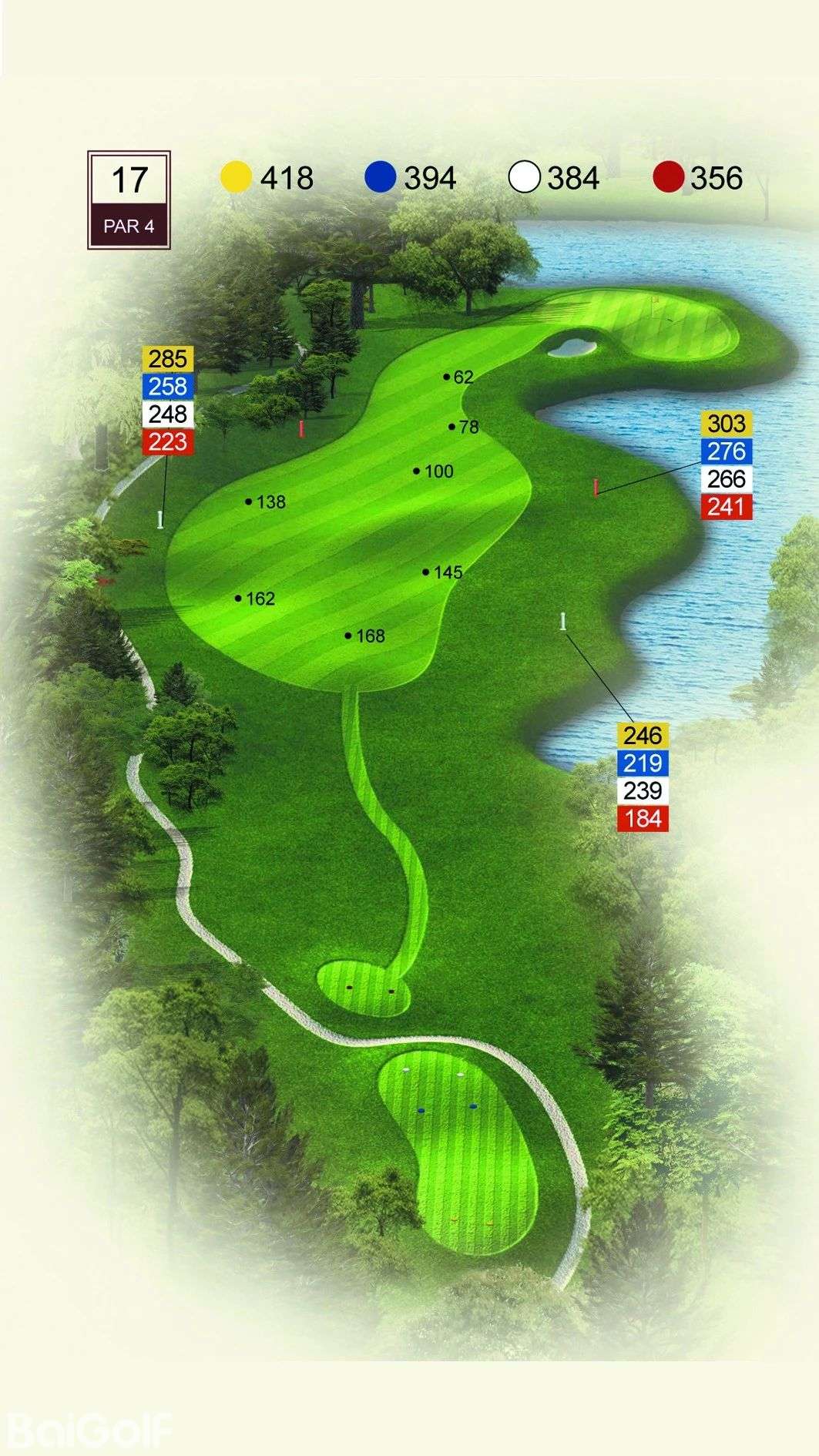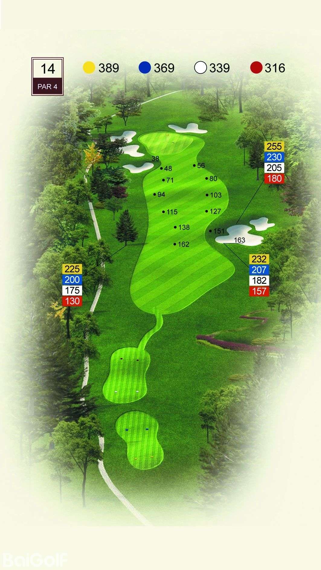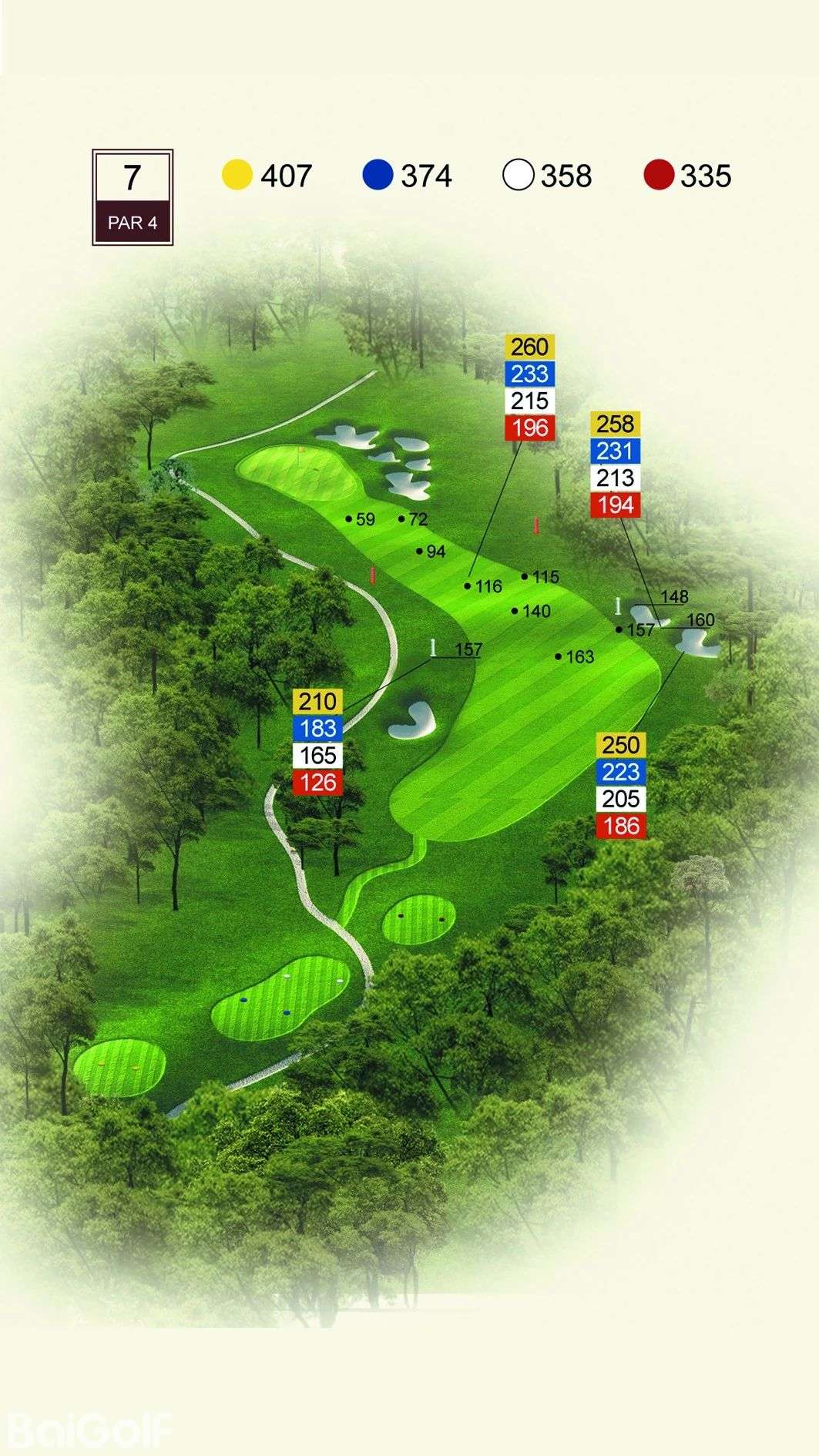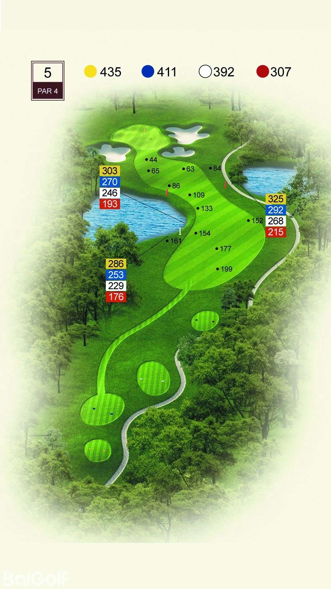球道中起伏不定的山丘、陡坡及果岭旁四侧的明暗陷井,给予球手一定难度挑战。宽阔无比的落球区和碧水环绕的果岭,令人在享受漂亮球道景观的同时,又使球技备受压力。