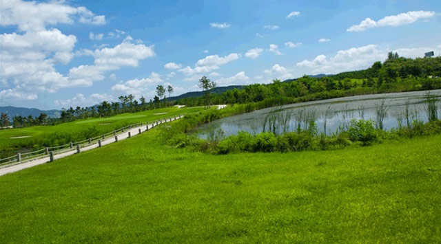 山东威海威高高尔夫俱乐部是满足国际标准的27洞及标准108杆的高尔夫球场。最大发挥周围环境和地形的自然设计,具备了名门高尔夫的最佳条件,其卓越的球场设计及独有的自然地貌,更是增加了球场趣味性和挑战性。球场内ABC三区也各有千秋:A区跌宕起伏,极具挑战。B区为丘陵地形,起伏较A区平缓,球道较长。而C区是湖景球场,唯美的湖景为比赛设立天然屏障。