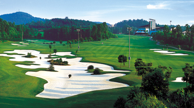 南海桃园高尔夫俱乐部坐落于南国桃园旅游度假区内,距离广州、佛山仅12公里。亚热带雨林的天然环境与丰富的人文景观成就了南国桃园这颗璀璨的明珠,山清水秀、山花烂漫、绿树成荫。南海桃园内有倾城倾国的桃花园、引人入胜的鹭鸟天堂、南海影视文化城、欧陆风格的乡村俱乐部、时尚高档的枫丹酒店、历史悠久的南海观音寺。球场已成为一个集休闲度假、康体娱乐、商务会议于一体的旅游胜地,你在这样的环境中打球可以享受到无可比拟的自然景色。球道采用纯种的美国夏威夷海滨草,果岭选用纯种的美国老鹰草。果岭风格迥异,双层设计,面积不大,考验球手的短杆和推杆技术。球场风景之冠当属8号洞,悬崖峭壁之下桃花烂漫,阳春三月在此享受挥杆之乐的同时更陶醉在“桃花笑春风”的胜景中。最具特色的18号洞居高临下,站在发球台上可一览球场全景;球道设计更将美国加州风情融于桃园之中,长达192码的大沙坑躺卧球道,发球后即使被迫进入沙坑作战,仍能以球道木杆在沙穴中飞沙穿扬,有在其它球道击球所不能比拟的乐趣。颇有“长沙洲展现加州风情,顶峰台饱览桃园春色”之气势。