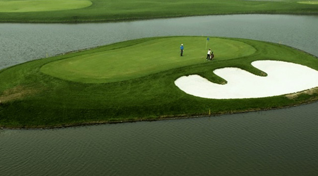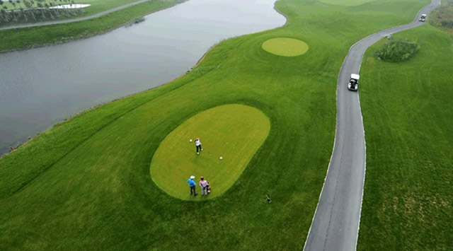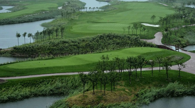 由世界五大著名高尔夫球场设计师之一的罗杰.帕柯德先生设计的LINKS风格球场(现已建成18洞、标准杆72杆的国际标准球场)。本球场主要以水系为特点,每条球道风格迥异,特色独具。30万平米的优美自然湖泊贯穿整个球场,多种野生鸟类在林间、水边栖息。小桥流水,色彩纷呈的经典小品点缀其间,在此可以随时享受完全脱离尘嚣的恬静、舒适。球道宽敞开阔,高低起伏、沙坑绵延,果岭波伏浪滑,美景之中充满挑战性,并配合沙坑、长草等障碍,是竞技、休闲的好地方