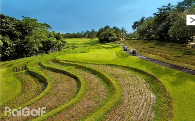 니르와나 발리의 18홀 골프장은 세계에서 사진이 가장 많고 난이도가 가장 높은 골프장 중 한 곳입니다. 사람을 질식시킬 정도로 아름다운 경치의 브라이트 스폿은 쌀이 심어 있는 곳인데 이 곳에는 특별히 배치한 울퉁불퉁한 벙커가 있습니다.