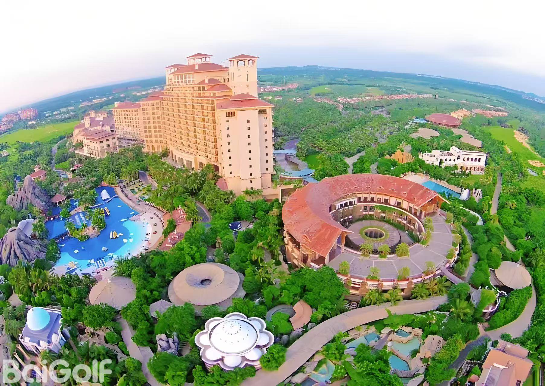 這18個3杆洞組成的球場集合了獨特而清晰的風格特點,每個果嶺設有兩個洞杯。這樣的果嶺設計是爲了提供兩種選擇:壹個更簡單、位置更容易估計,另壹個則要困難得多。植物園式的園林風格給人壹種很享受的布滿各色樹木和鮮花的氛圍環境,與海口的藍天和清新空氣相得益彰。所有水平級別的球手都可以在這座球場找到適合他們的心情和技術的樂趣。家庭成員、初學者以及職業球手,都能夠在此打球或練習,度過愉快美好的壹天。