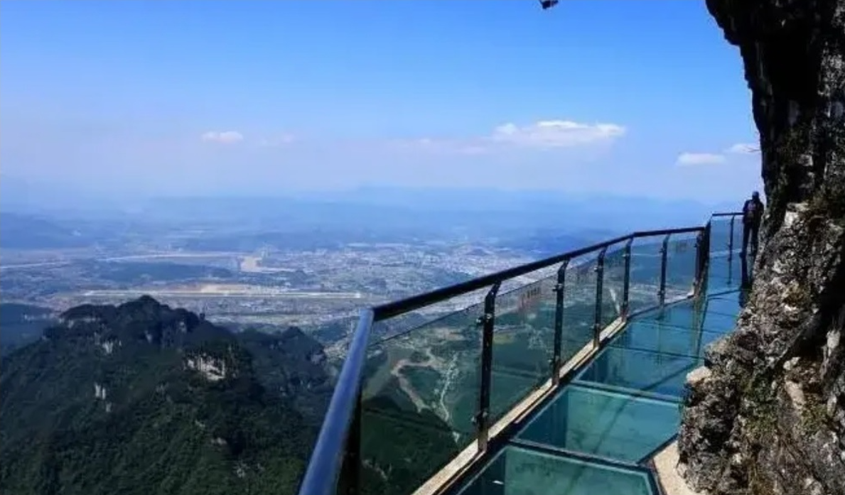 張家界玻璃棧道,位于張家界天門山玻璃棧道懸于山頂西線,長60米,最高處海拔1430米。是張家界天門山景區繼懸于峭壁之上的鬼谷棧道、憑空伸出的玻璃眺望台,從玻璃台可以看見下面。