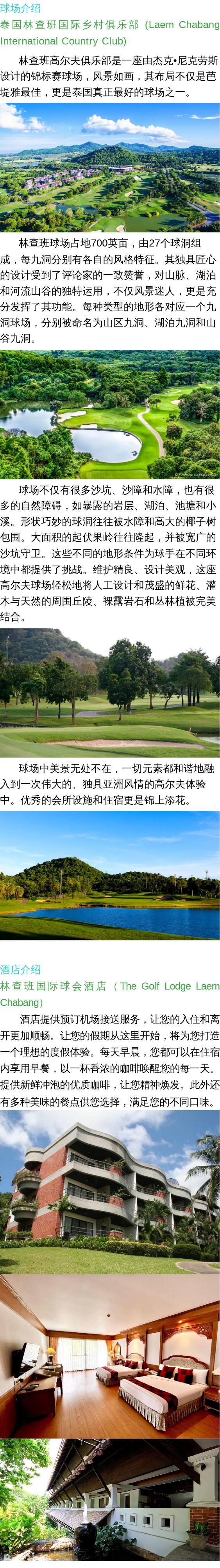 抵达后到酒店办理入住,然后前往泰国林查班国际乡村俱乐部 (Laem Chabang International Country Club)挥杆18洞。