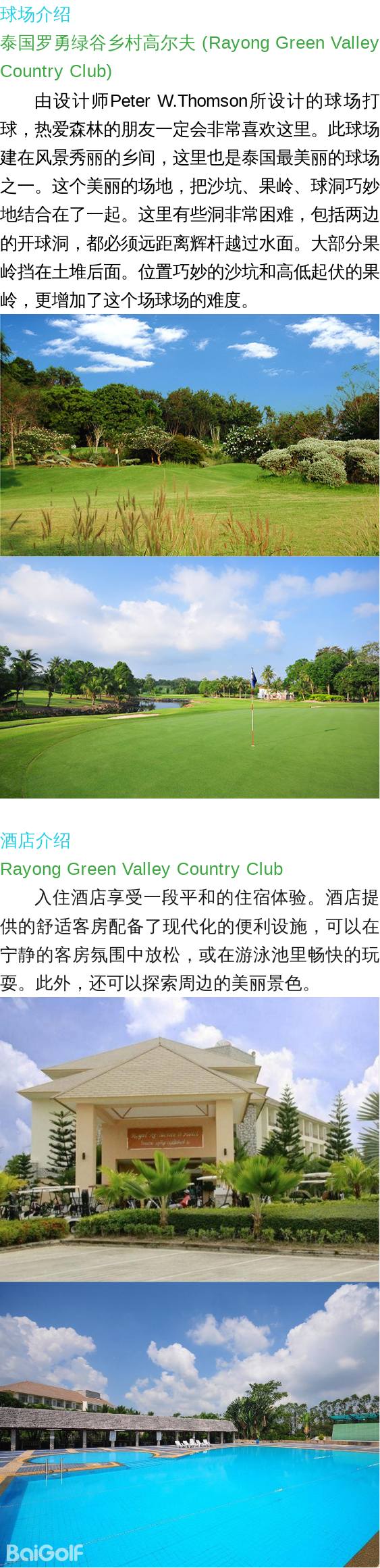 抵达后到酒店办理入住,然后前往泰国罗勇绿谷乡村高尔夫 (Rayong Green Valley Country Club)挥杆18洞。