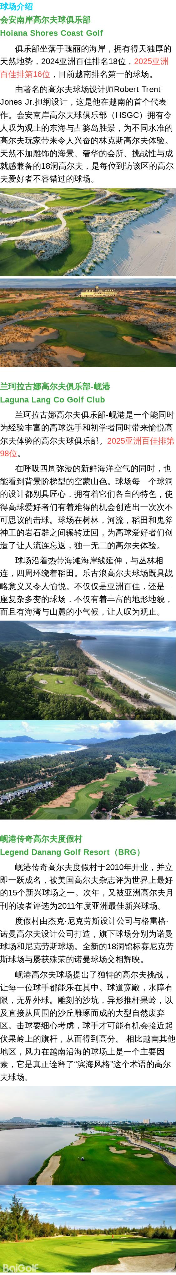 1、平日3场18洞:果岭+球童+球车1/2(会安南岸、兰珂拉古娜、岘港传奇)