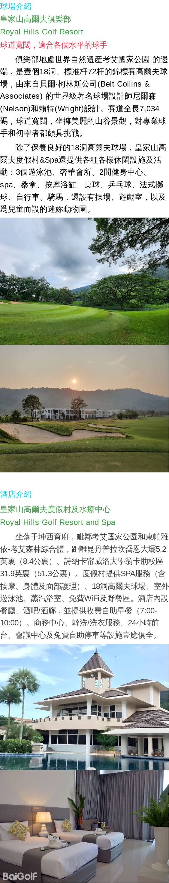 抵達後到酒店辦理入住,然後前往皇家山高爾夫俱樂部(Royal Hills Golf Resort)揮杆18洞。