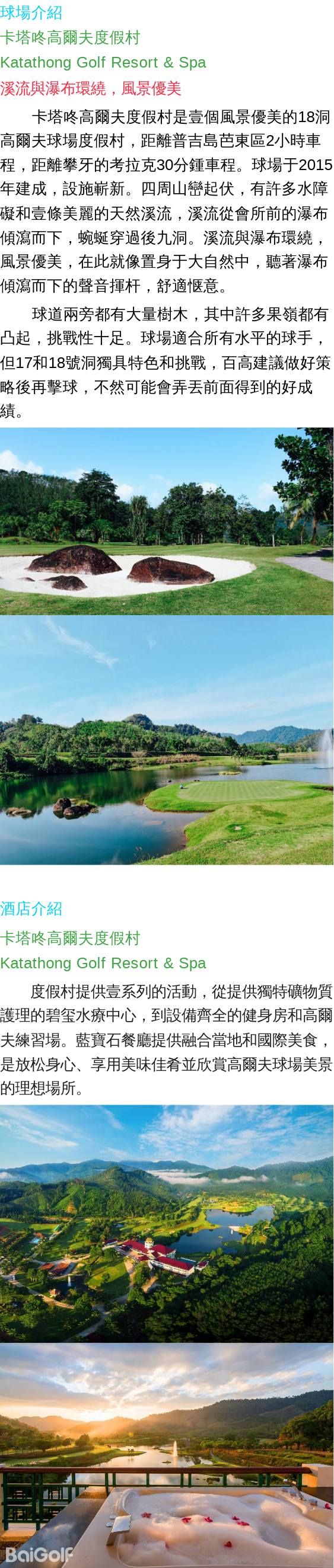 抵達後到酒店辦理入住,然後前往卡塔咚高爾夫度假村(Katathong Golf Resort & Spa)揮杆18洞。