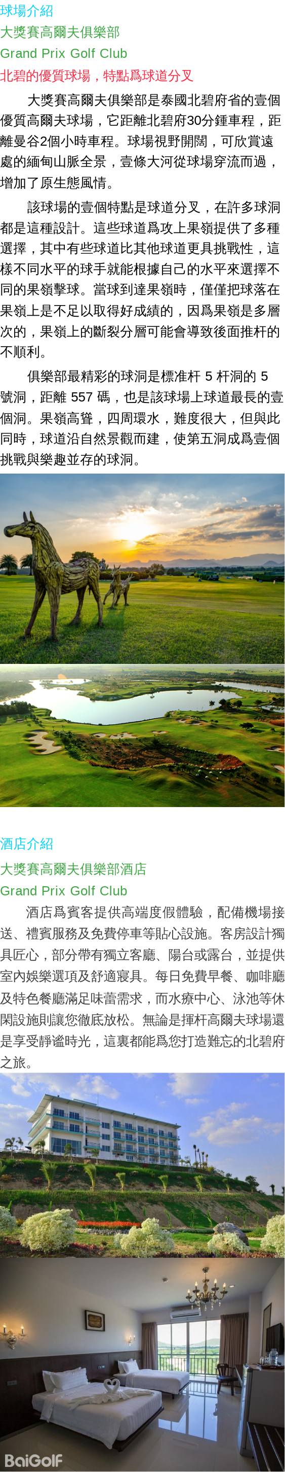 抵達後到酒店辦理入住,然後前往大獎賽高爾夫俱樂部(Grand Prix Golf Club)揮杆18洞。