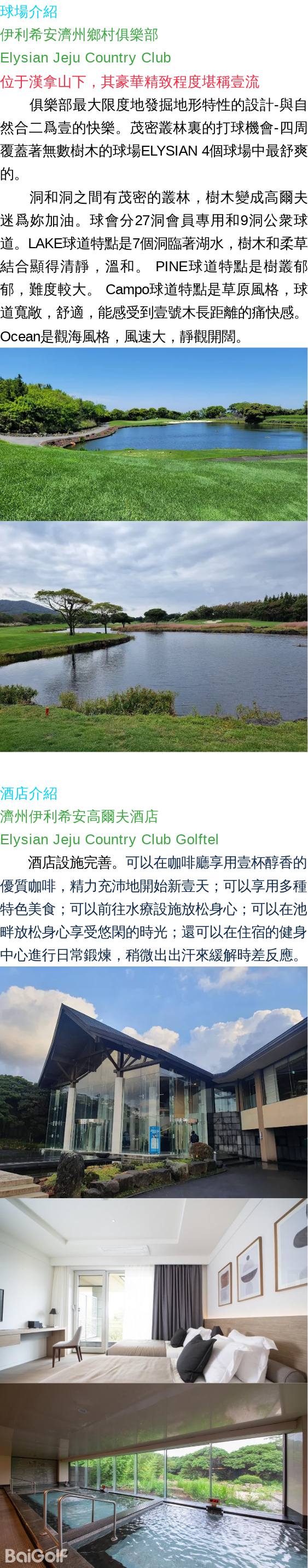 抵達後到酒店辦理入住,然後前往伊利希安濟州鄉村俱樂部(Elysian Jeju Country Club)揮杆18洞。